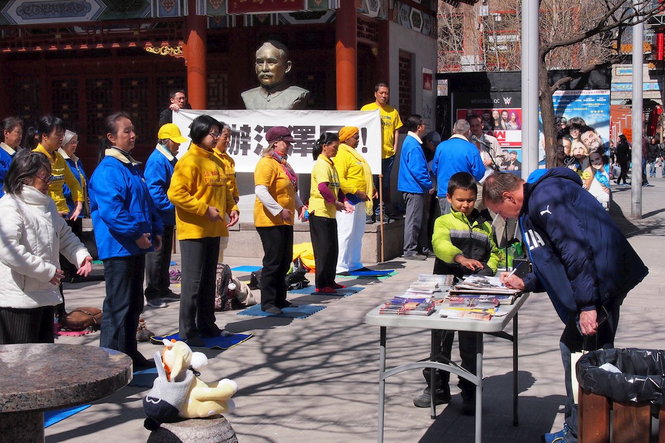 ![]() 图3:二零一八年四月二十一日,加拿大蒙特利尔的部份法轮功学员在唐人街中山公园举行集会和集体炼功,纪念“四·二五”万人和平上访十九周年。现场民众了解真相后,在反迫害征签信上签字。 |