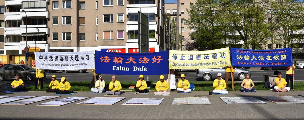 为纪念“四·二五”这座不朽的道德丰碑,二零一八年四月二十二日,波兰法轮功学员在华沙市举办了纪念活动。当天下午三点,法轮功学员首先在华沙中使馆门前举办静坐活动,抗议中共十九年来迫害法轮功的种种罪行,悼念因坚持真理匡扶正义而被中共迫害致死的中国大陆法轮功学员。