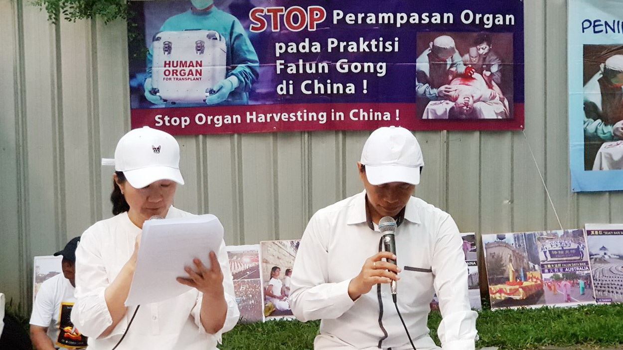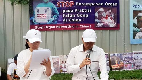 ![]() 图1~3:雅加达法轮功学员在中共大使馆前举办纪念四二五的活动 |
