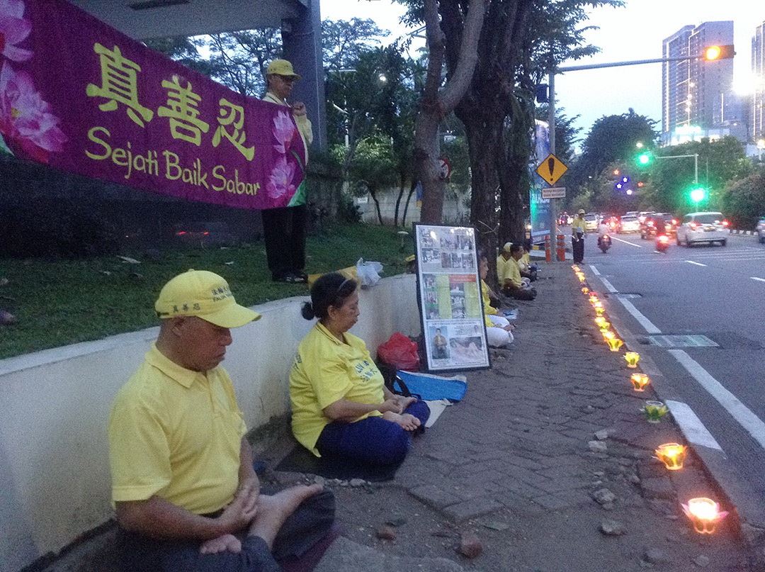 夜幕渐临,一盏盏蜡烛亮起结束活动。肃穆的氛围里,传递雅加达法轮功学员们的坚定信念。在摇曳的烛光下,悼念为坚持修炼真、善、忍而遭中共迫害致死的法轮功学员,同时向外界传递信息,“立刻停止迫害!”