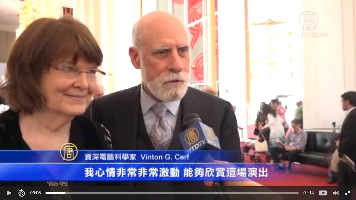 被誉为“互联网之父”的文頓·瑟夫(Vint Cerf)和妻子辛格利德 ·瑟夫(Singrid Cerf)一同观看了四月十四日,神韵在华府的演出。瑟夫先生是互联网基础协议和架构的联合设计者之一,在上个世纪七十年代曾参与互联网的早期开发和建设,因此获得过“图灵奖”及“总统自由勋章”等荣誉。