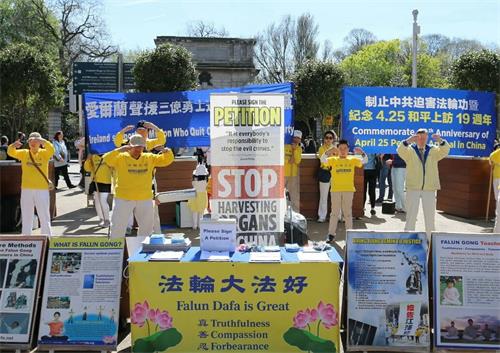 ![]() 图1~3:爱尔兰法轮功学员在首都都柏林市中心集会,纪念“四·二五”和平上访十九周年,传播法轮功真相。 |