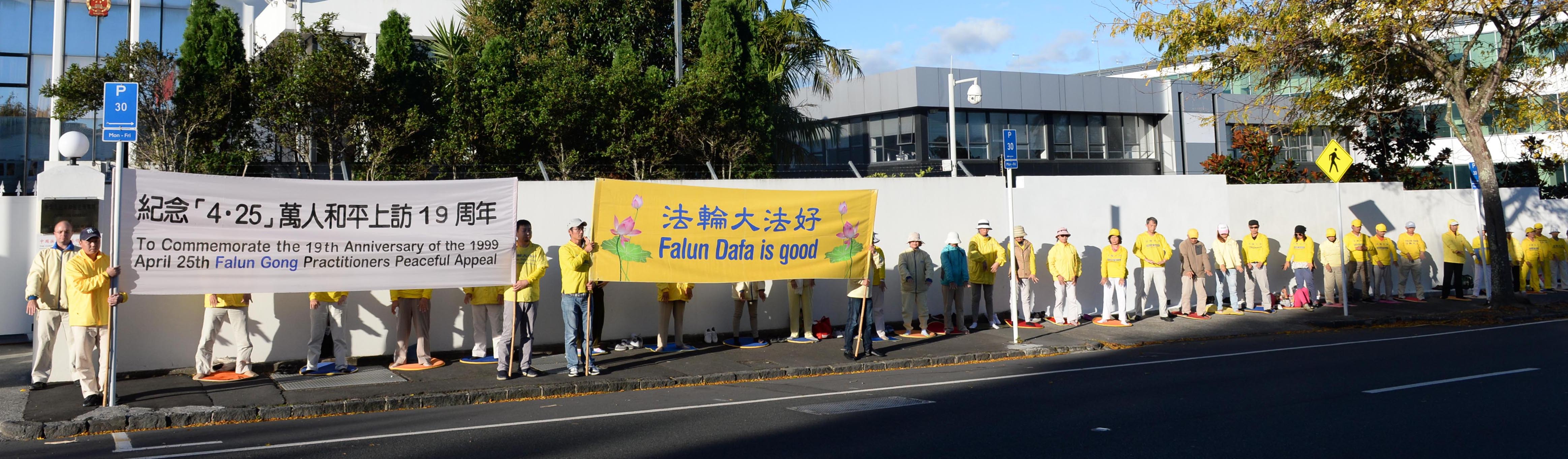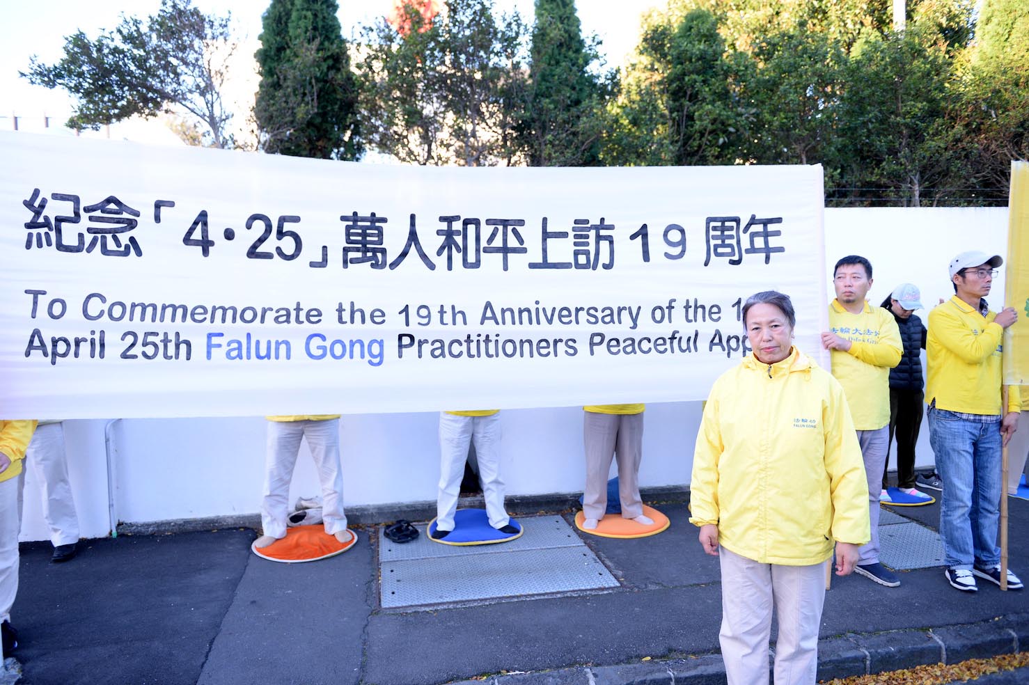 ![]() 二零一八年四月二十五日,奥克兰近百名法轮功学员聚集在中领馆门前,举办了四二五和平上访十九周年的纪念活动。 |
