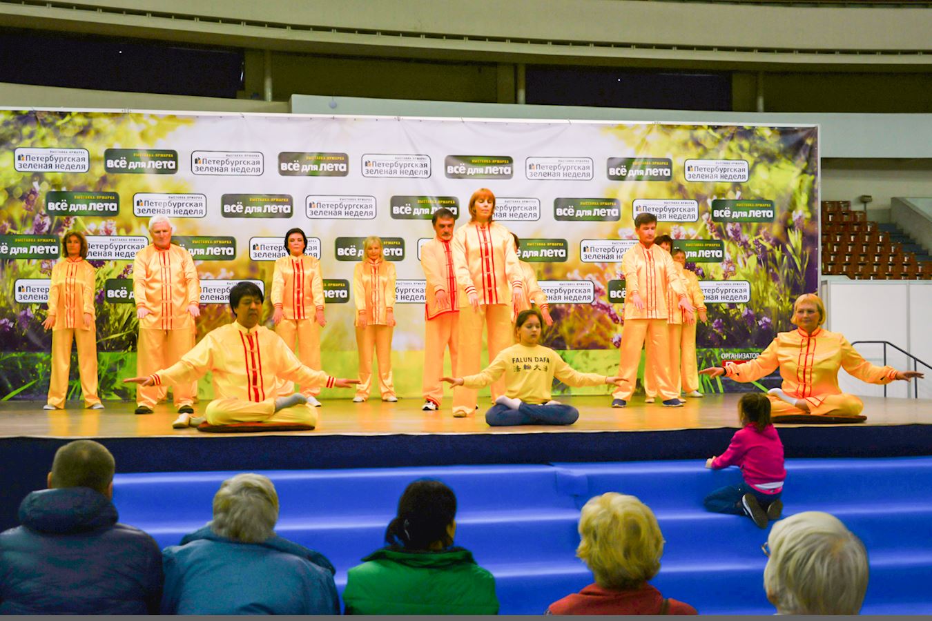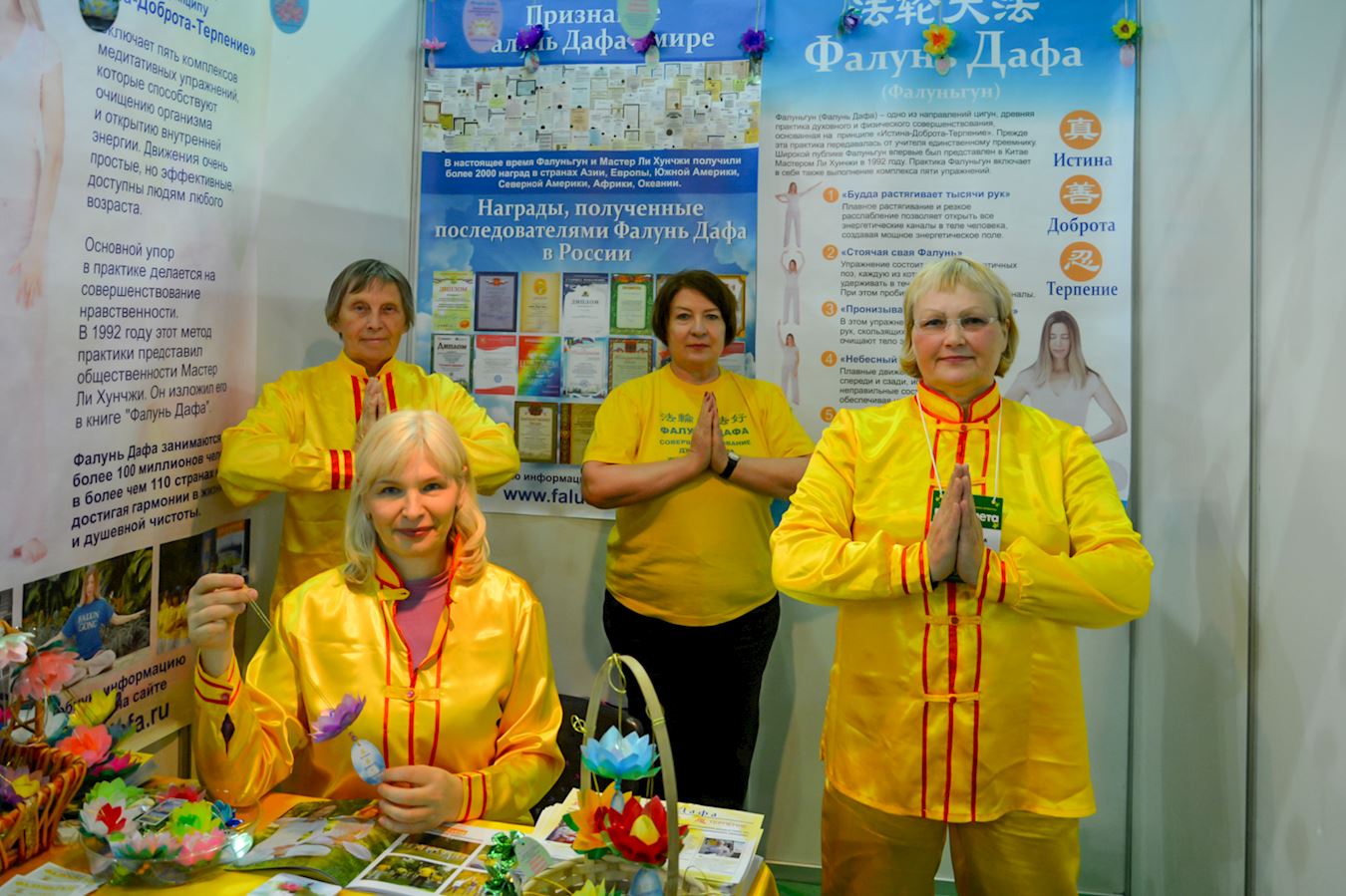 ![]() 图3:法轮功学员参加圣彼得堡夏季展销会,介绍功法 |
