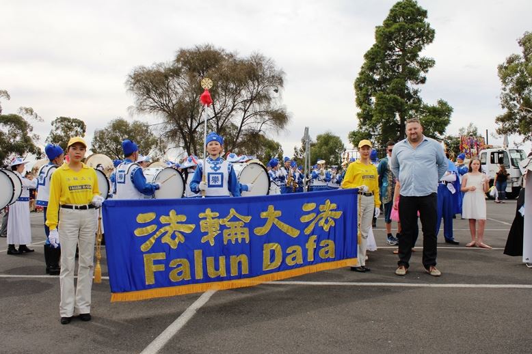 墨尔本法轮功团体十多年来每年都受邀参加,天国乐团威武雄壮的演奏,特别受到当地居民的欢迎。