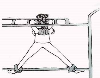 ![]() 中共酷刑示意图:“四肢上绳” |