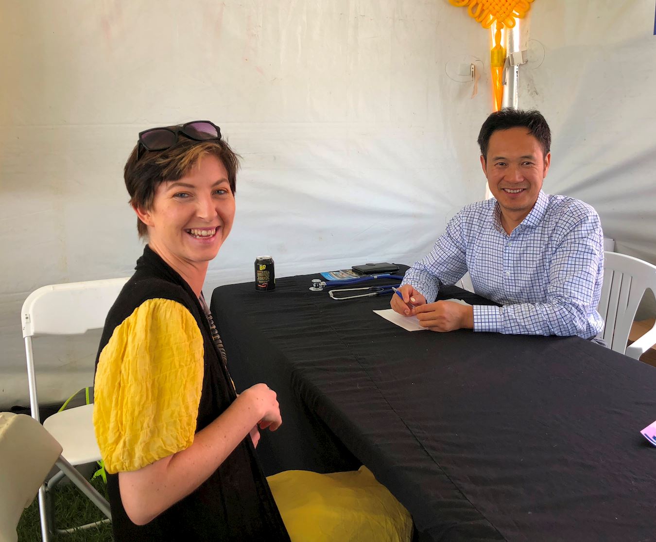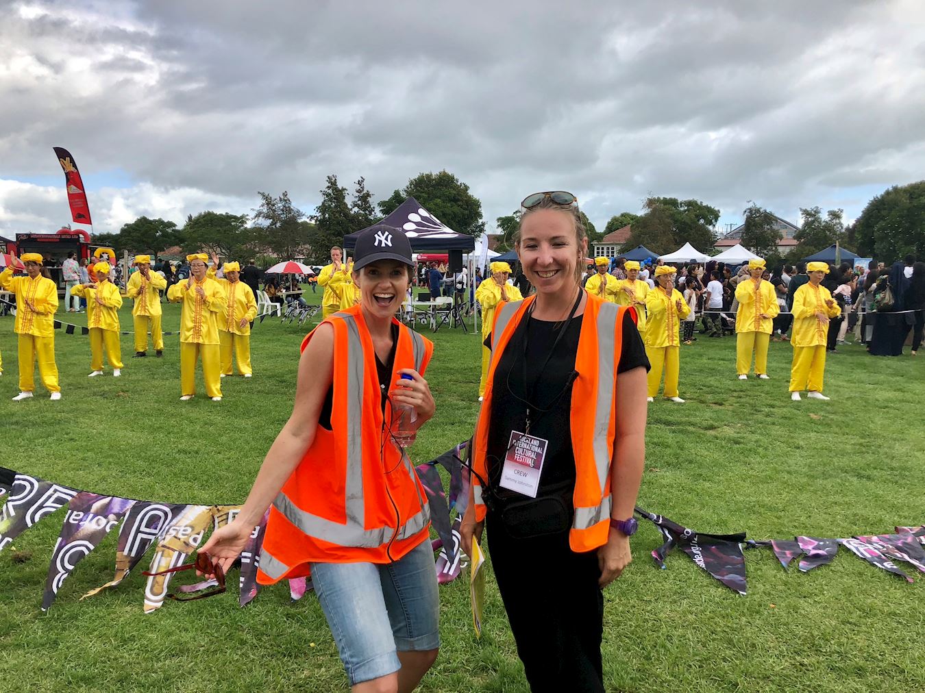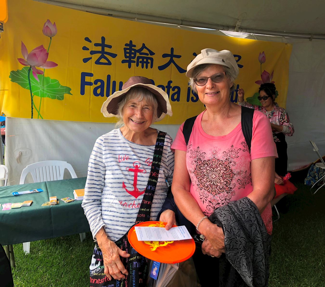 赛米(Sammy)和卡茹(Cara)是文化节的工作人员,她们说,法轮功学员的腰鼓队,服装很好看,很醒目,金黄的颜色走到哪里,就象耀眼的阳光照到哪里。她们了解法轮功,因为法轮功学员经常会参加社区活动。