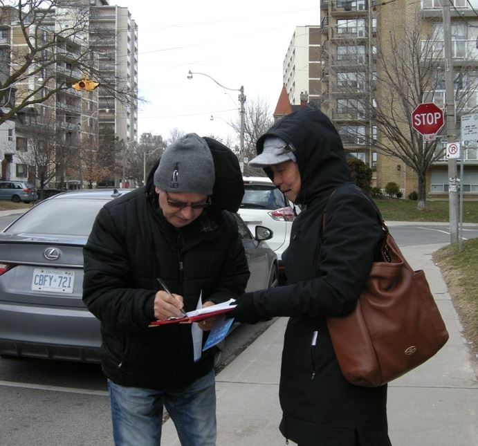 杰克·布林克曼(Jack M. Brinckman )先生在多伦多娱乐界工作,当天从活动现场经过,了解到今天活动的情况和法轮大法真相后,在支持反迫害的征签表上签了名。他说:“法轮大法的‘真、善、忍’是非常美好的法理,孙茜女士被迫害真是太糟糕了,我百分之百地支持你们的活动!”
