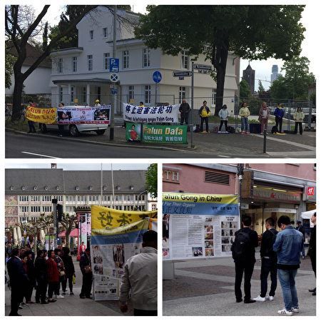 ![]() 图1:法兰克福和周边的法轮功学员在中领馆前和市中心保尔教堂景点举行集会,纪念“四二五”上访十九周年活动。 |