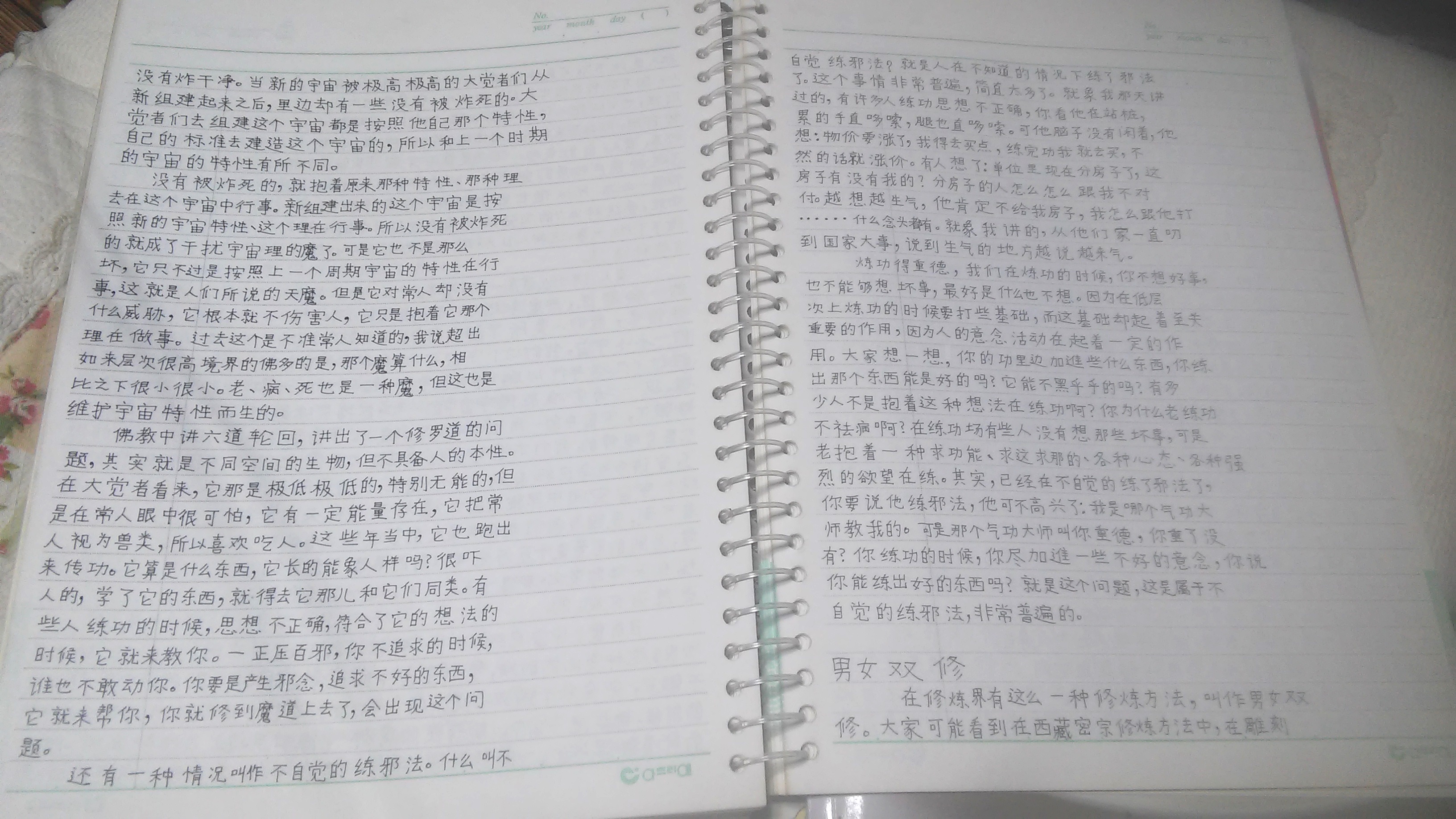 抄写法的过程,原来也是心性修炼的过程。我在学生时期,也没有这么长时间的拿笔写字,因此抄写时感觉非常吃力。开始的时候,由于专注和用力,手腕也痛,手指骨节都感觉僵硬、疼痛。但是,我只要在家,就坚持抄写《转法轮》。但是,厚厚的词典,查字词的时候仍需要花费不少时间,偶然的机会,我了解到还有中文的电子词典,于是我就顺手买了一个。后来才知道,我买的电子词典是当时最盛行的热手词典,原来是师尊安排了最好的词典给我。由于,电子词典有发出词语读音的功能,我出于好奇心,偶尔也听听某些词语的读音,还跟着读。在抄学工程基本接近尾声的时候,我猛然觉得“光用眼睛识字,不会读,岂不是太憋屈呀?”于是,我终于又下决心学中文读音。在抄写《转法轮》一遍之后,我马上开始学习中文读音。