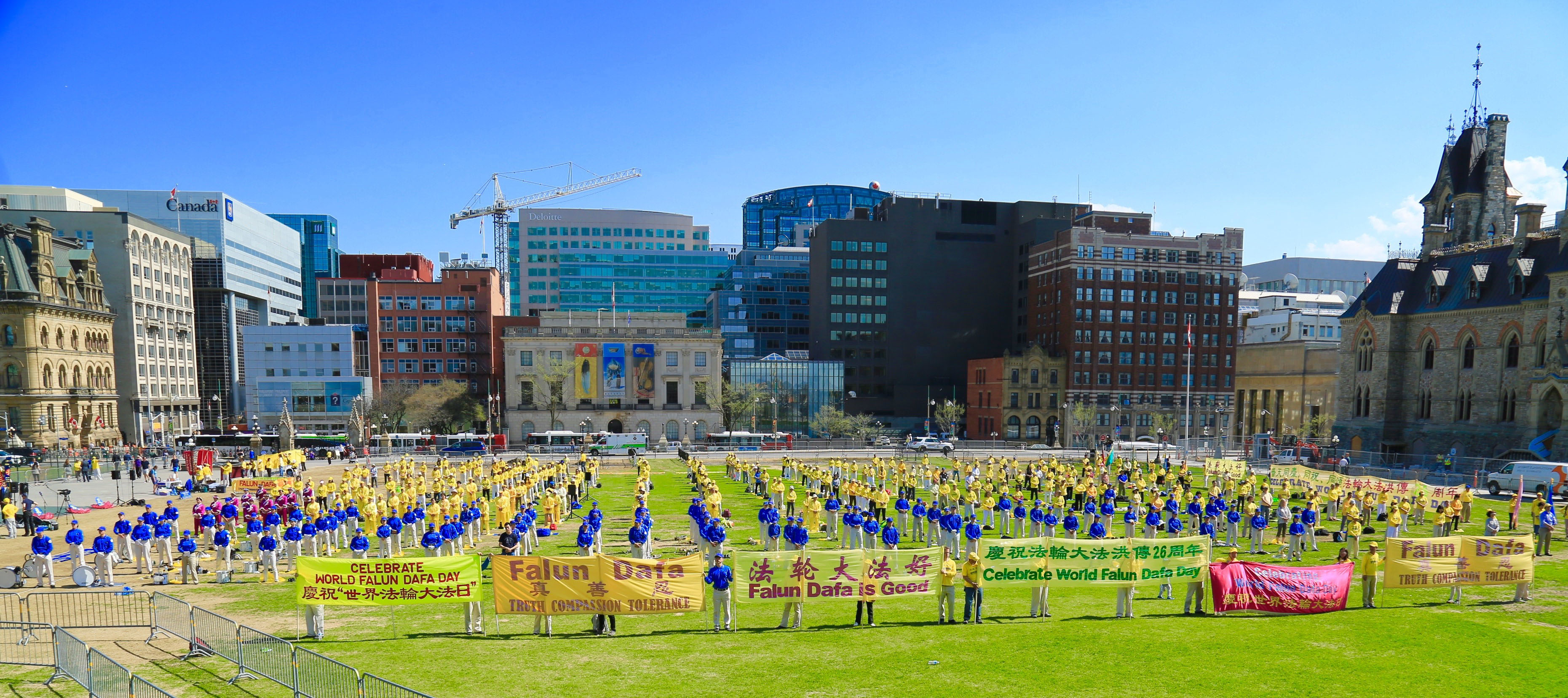 法轮大法日庆祝期间,加拿大多位部长、各级议员再度为法轮大法发出贺信和褒奖。九日,法轮功学员以天国乐团游行、歌舞和真相展的方式庆祝法轮大法洪传世界二十六周年。