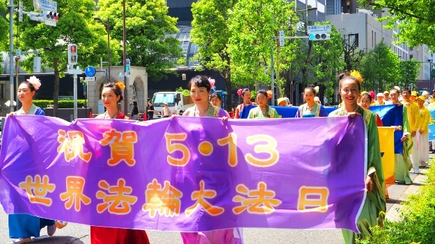 法轮功学员的游行队伍穿过银座的街道,很多路人都了解了法轮功的真相还有不少人签名支持法轮功学员反迫害。