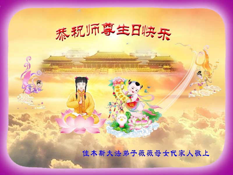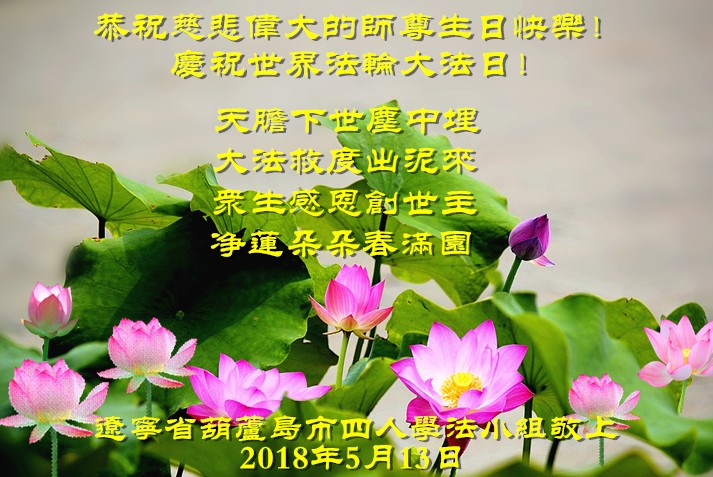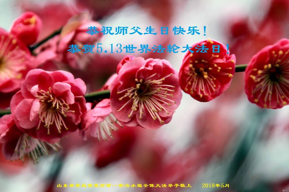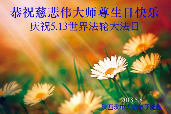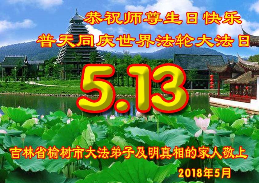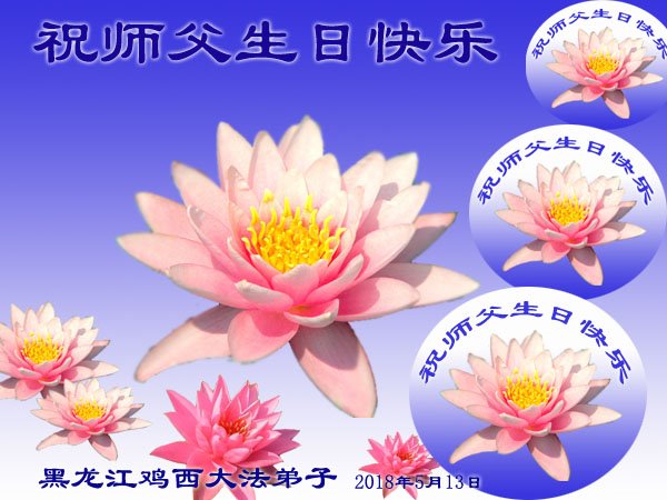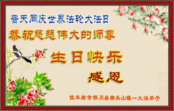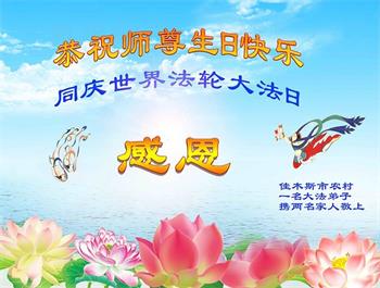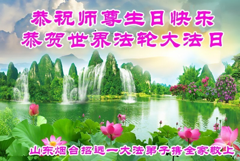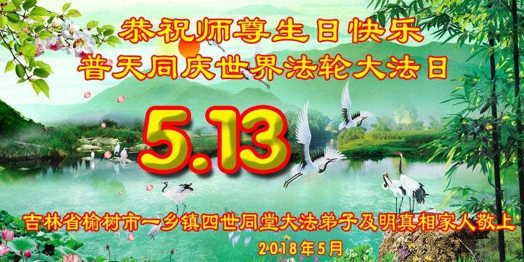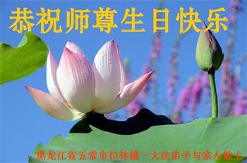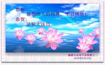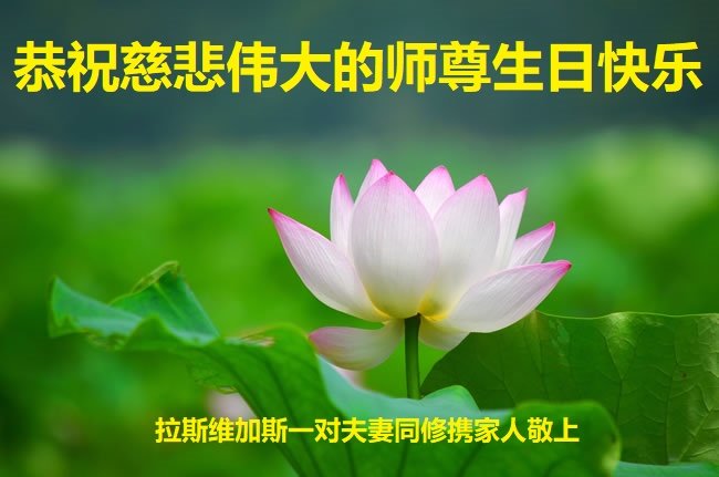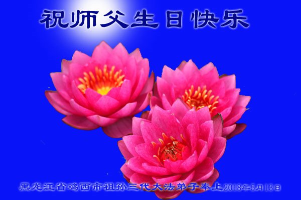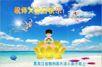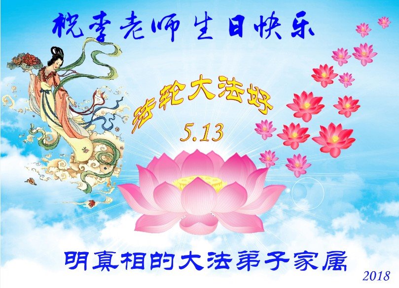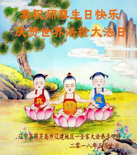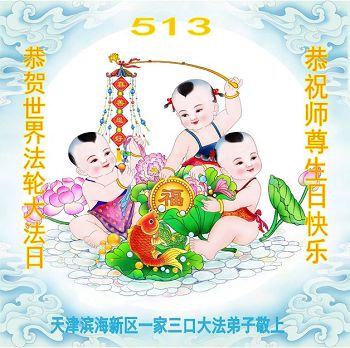 马上就到法轮大法日了,在此普天同庆的时刻,纽约上州大法弟子一家四口恭祝慈悲伟大的师父生日快乐。弟子一家谨记师父的教诲做好三件事,加倍弥补以前没做好的损失,走好以后的路请师父放心。