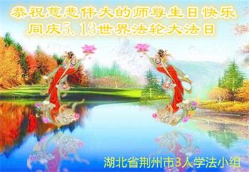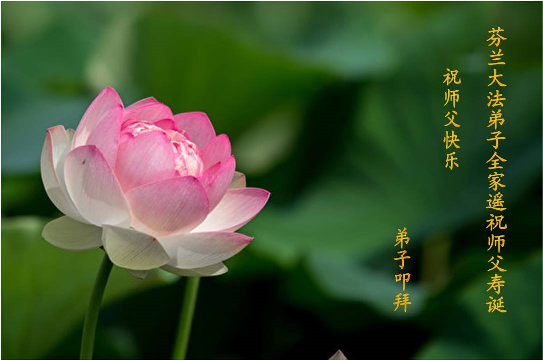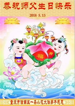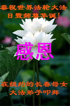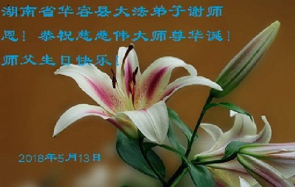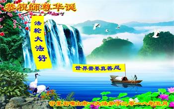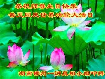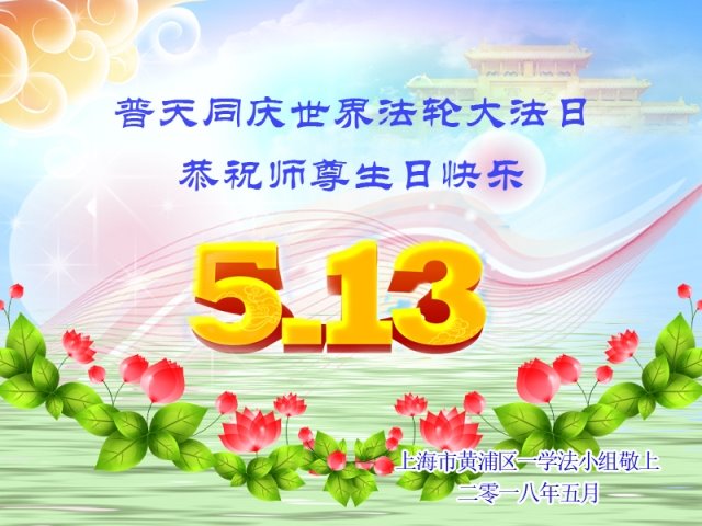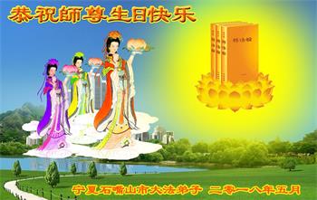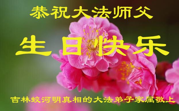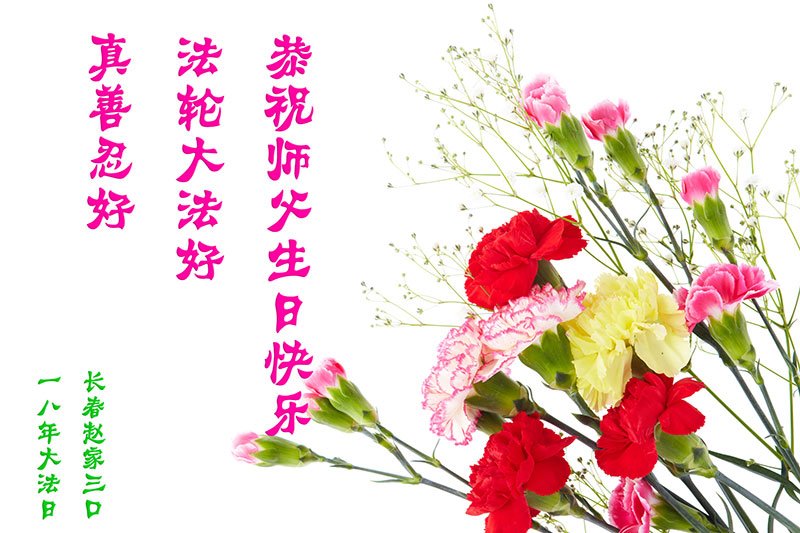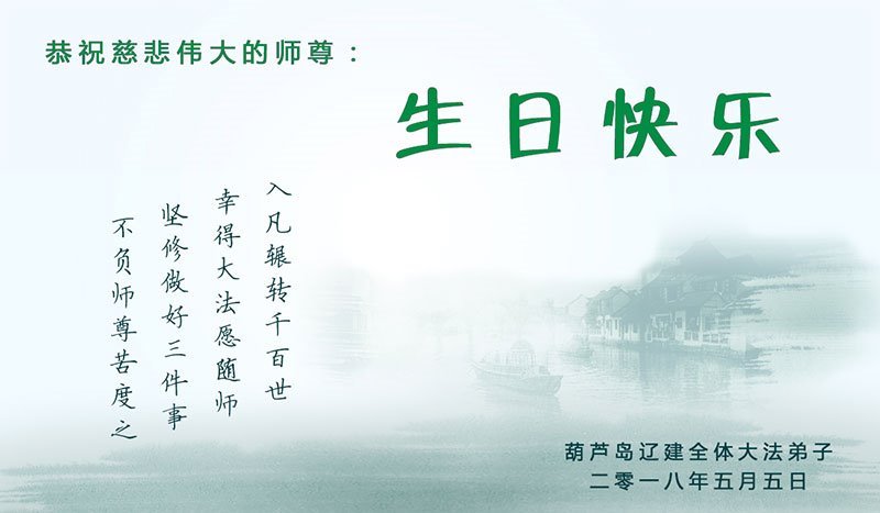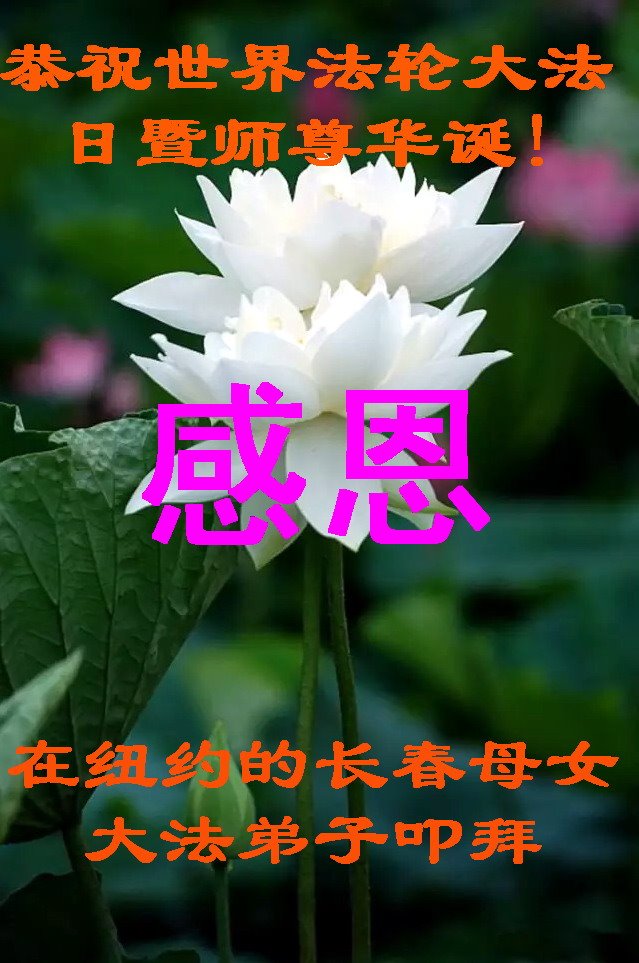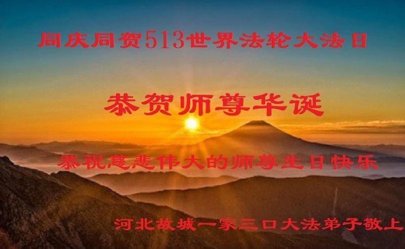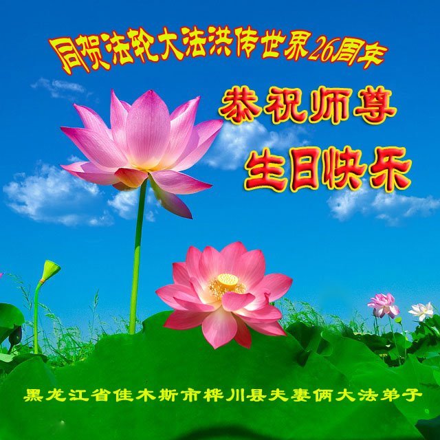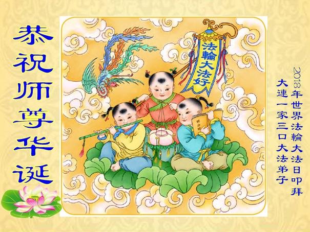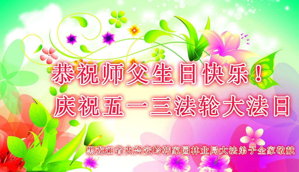 马上就到法轮大法日了,在此普天同庆的时刻,纽约上州大法弟子一家四口恭祝慈悲伟大的师父生日快乐。弟子一家谨记师父的教诲做好三件事,加倍弥补以前没做好的损失,走好以后的路请师父放心。