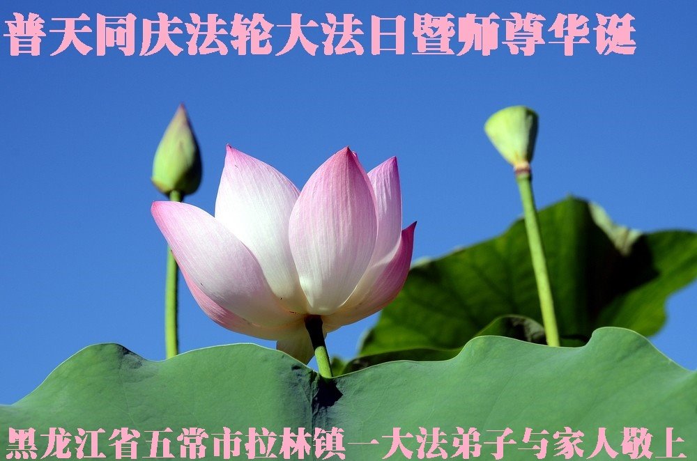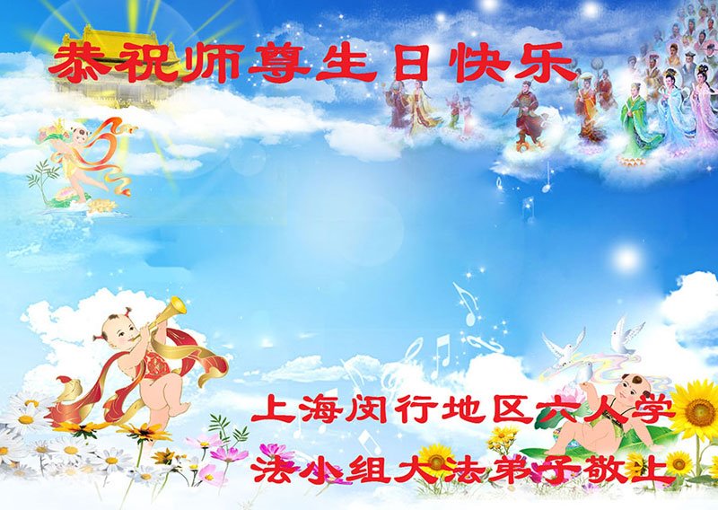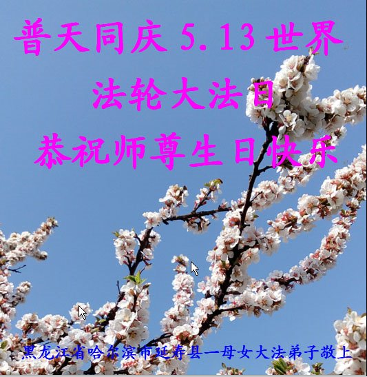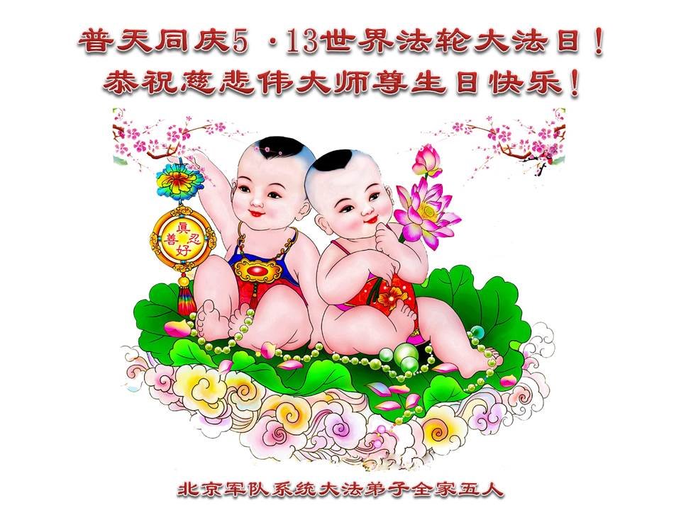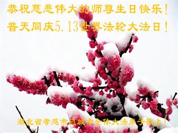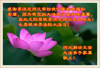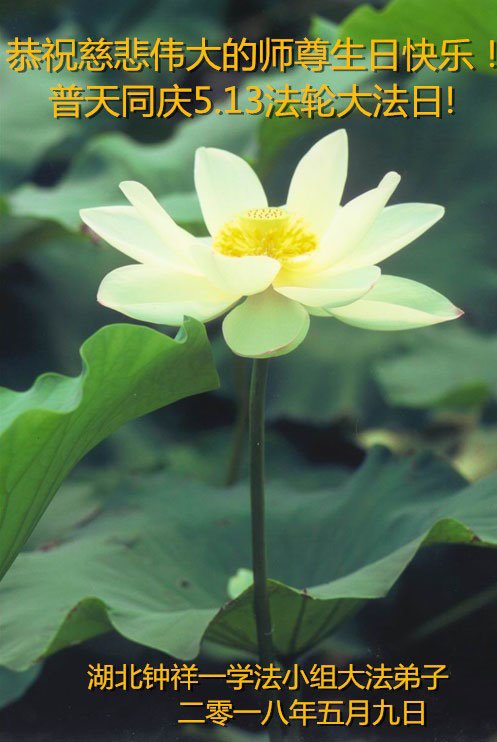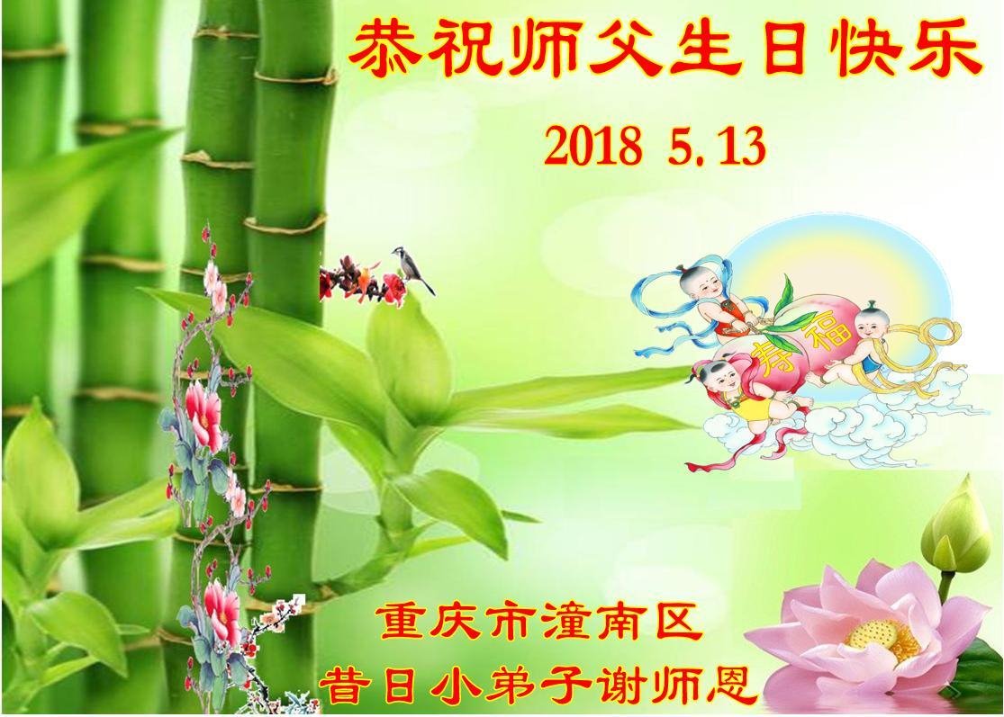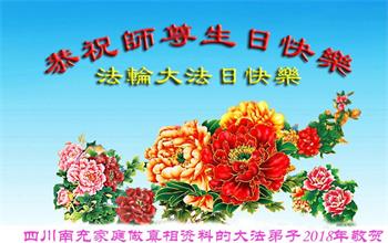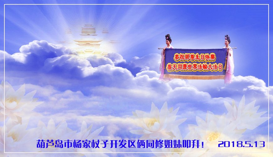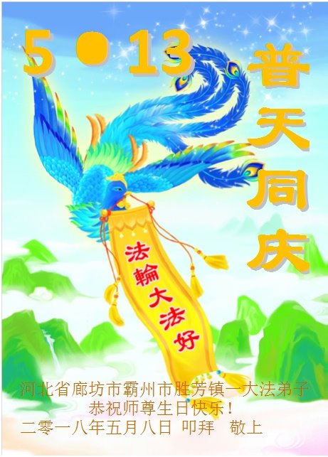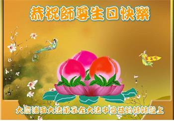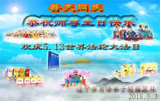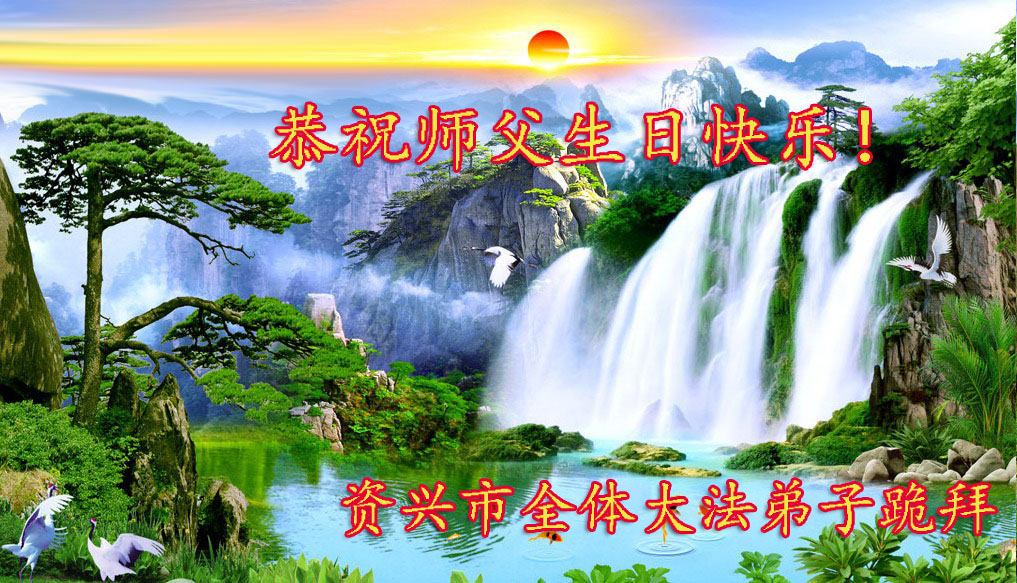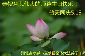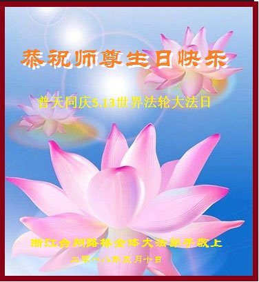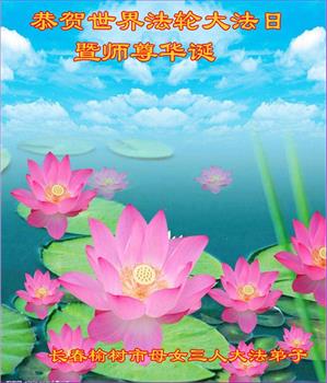 马上就到法轮大法日了,在此普天同庆的时刻,纽约上州大法弟子一家四口恭祝慈悲伟大的师父生日快乐。弟子一家谨记师父的教诲做好三件事,加倍弥补以前没做好的损失,走好以后的路请师父放心。