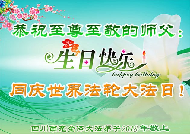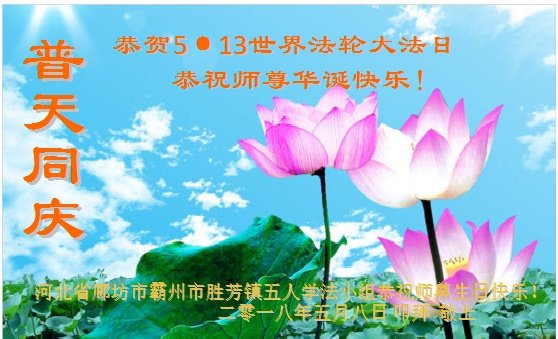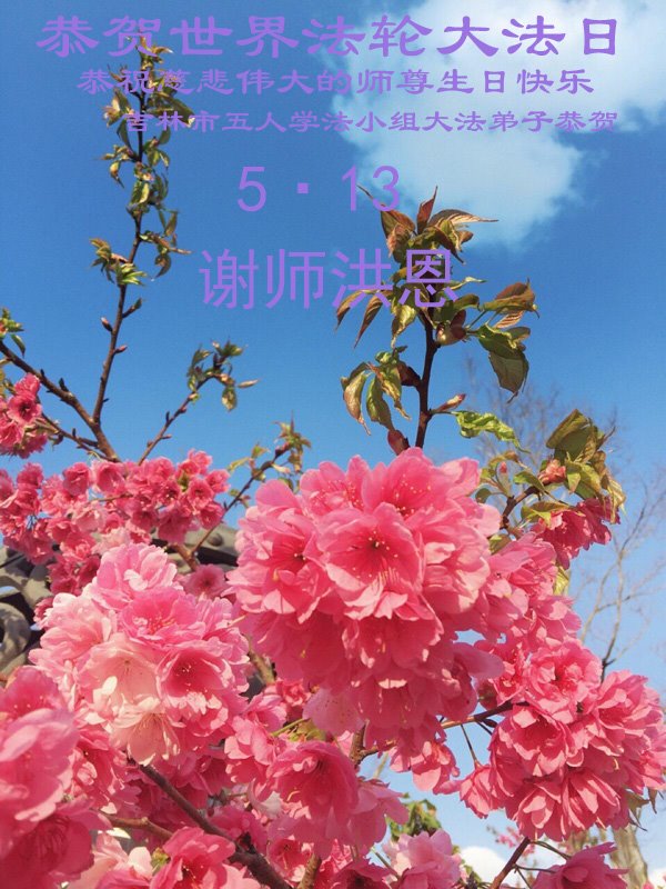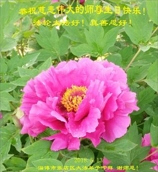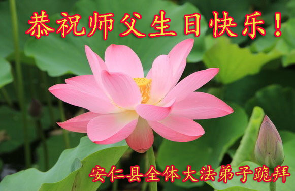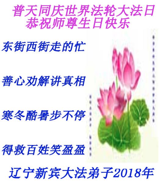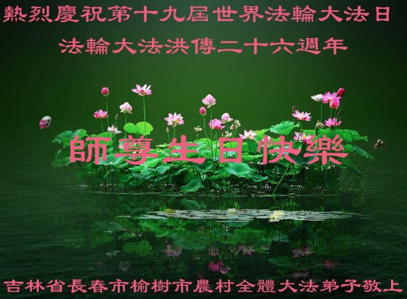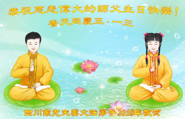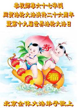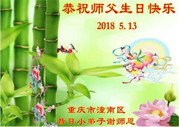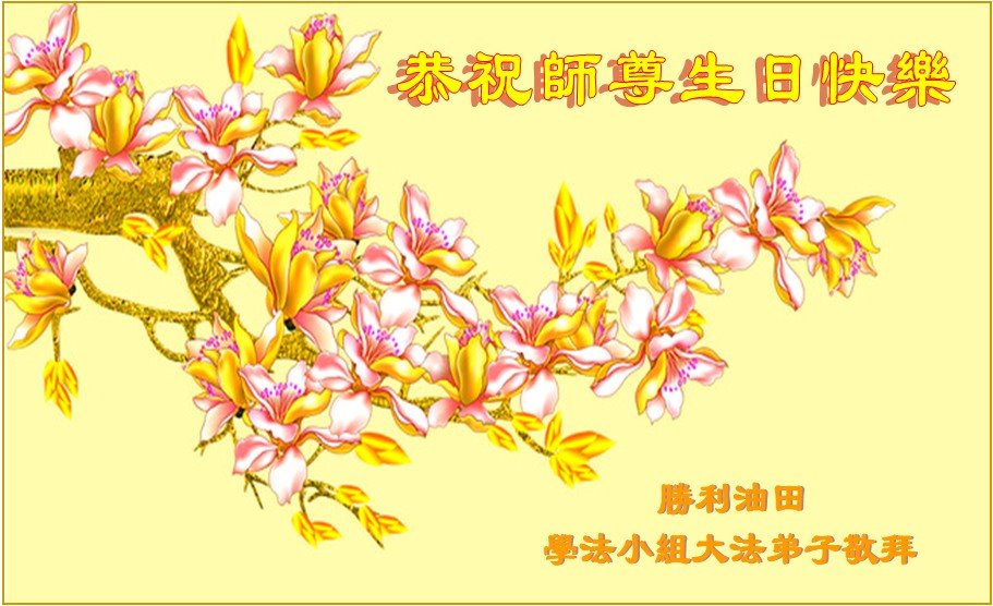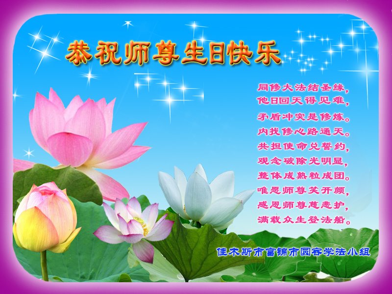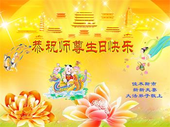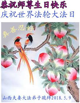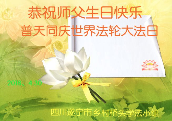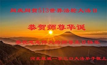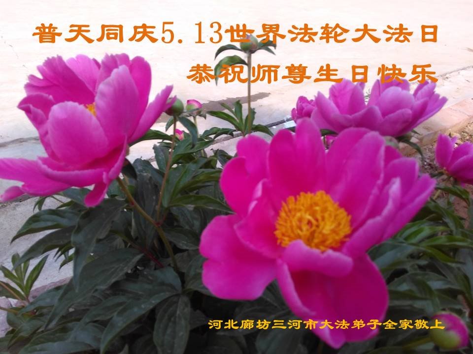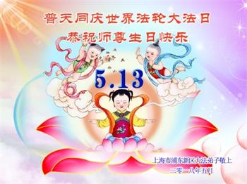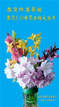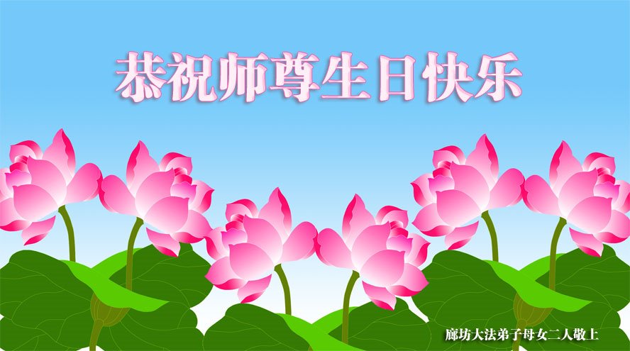 马上就到法轮大法日了,在此普天同庆的时刻,纽约上州大法弟子一家四口恭祝慈悲伟大的师父生日快乐。弟子一家谨记师父的教诲做好三件事,加倍弥补以前没做好的损失,走好以后的路请师父放心。