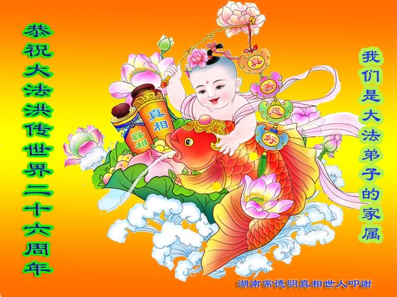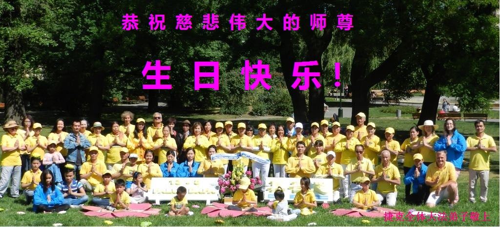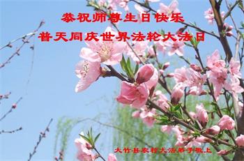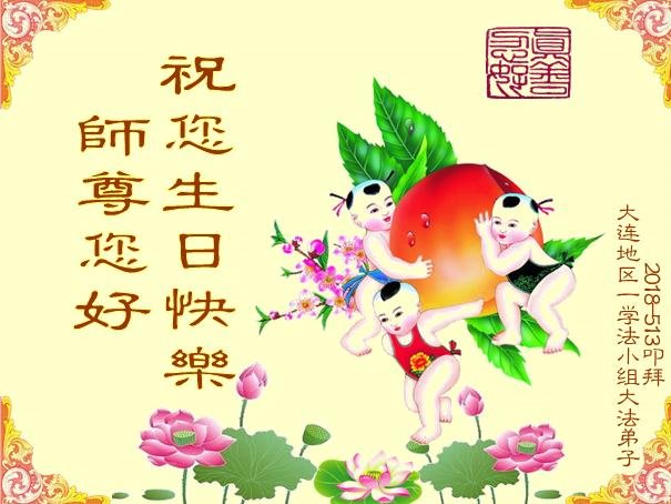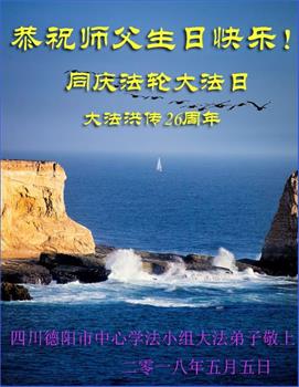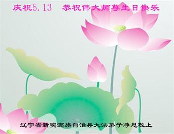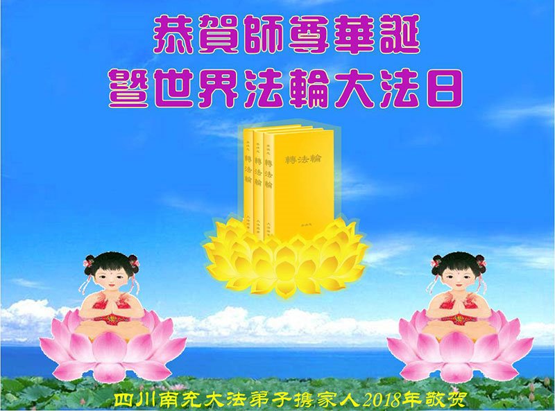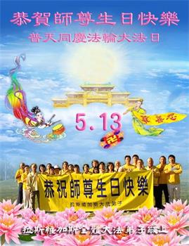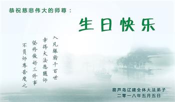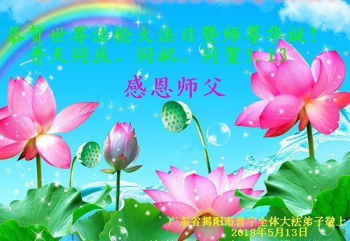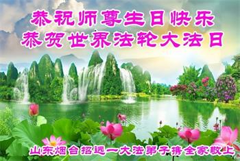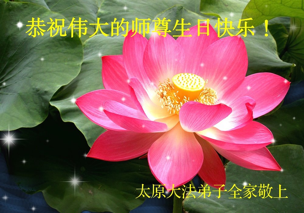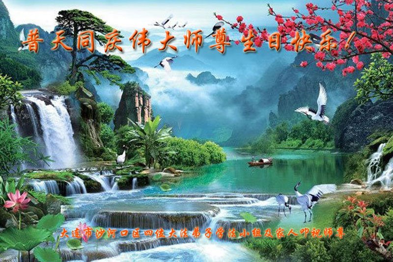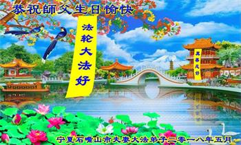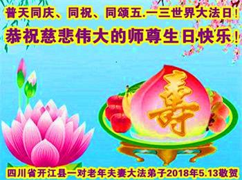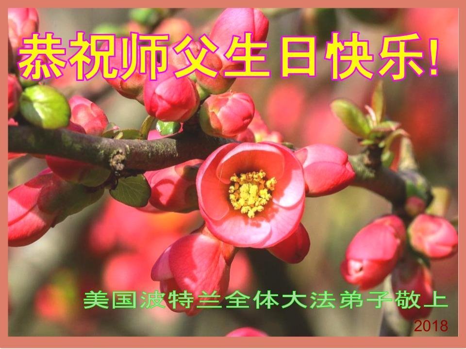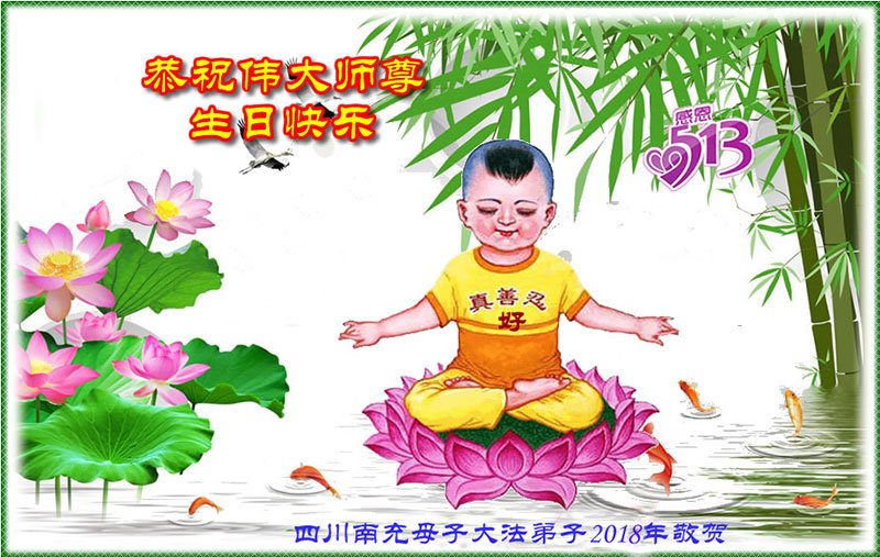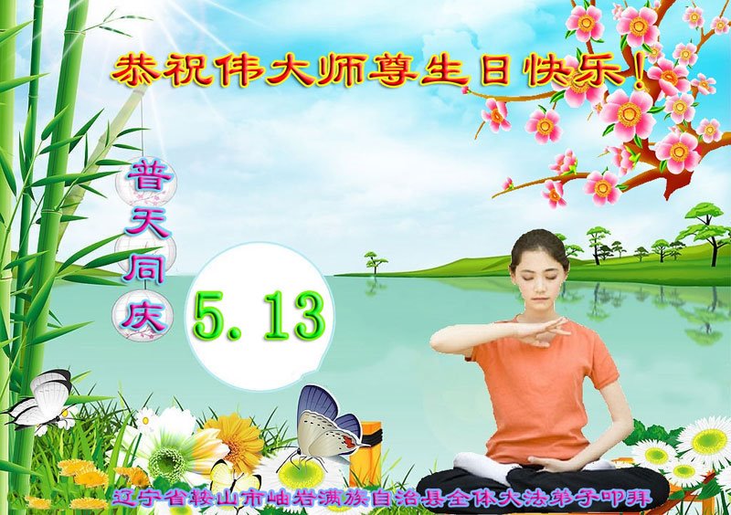 马上就到法轮大法日了,在此普天同庆的时刻,纽约上州大法弟子一家四口恭祝慈悲伟大的师父生日快乐。弟子一家谨记师父的教诲做好三件事,加倍弥补以前没做好的损失,走好以后的路请师父放心。