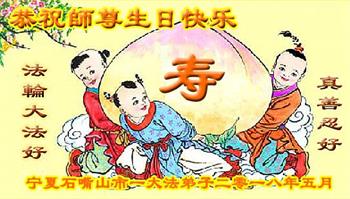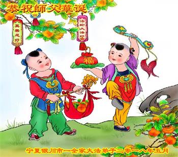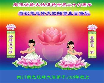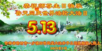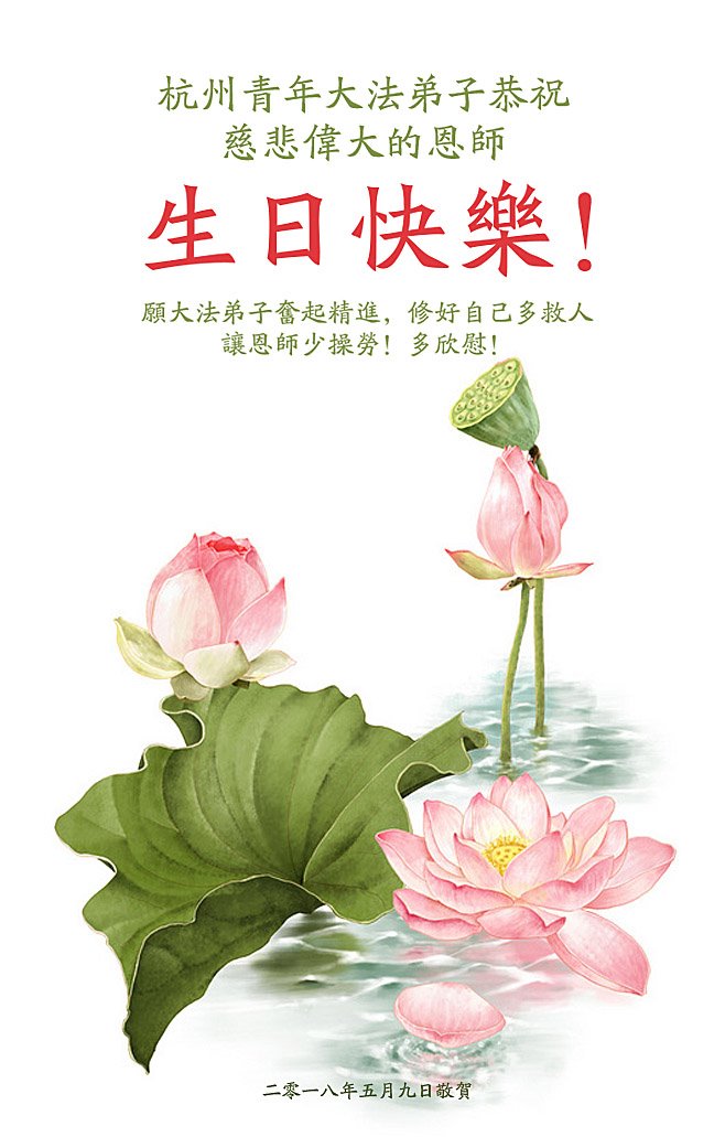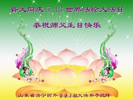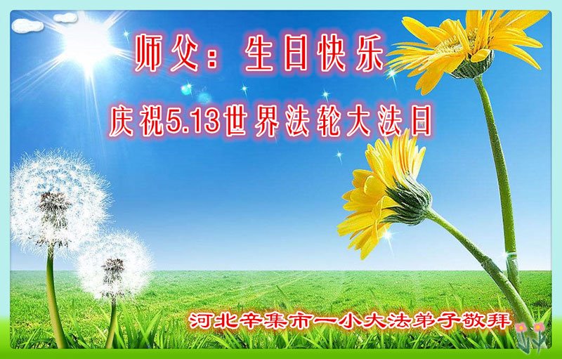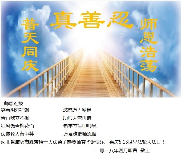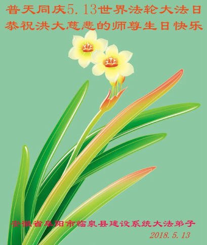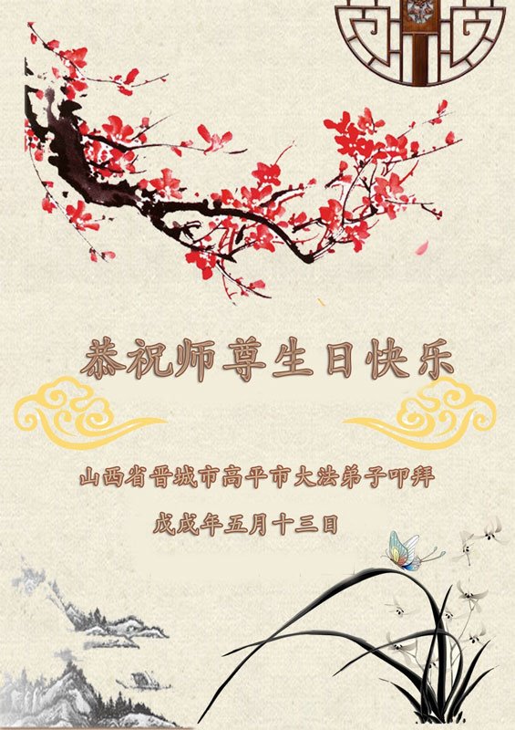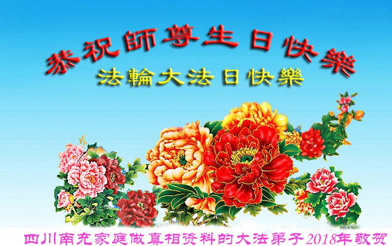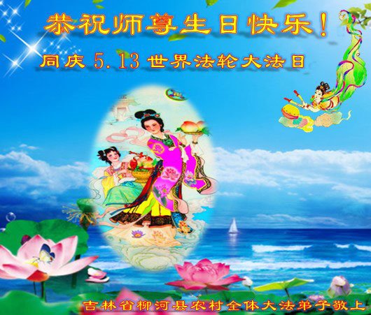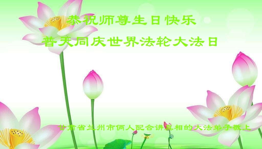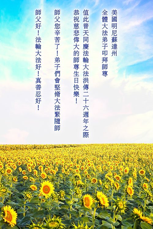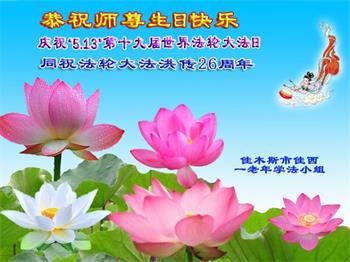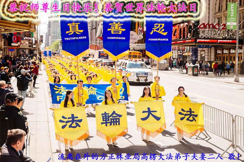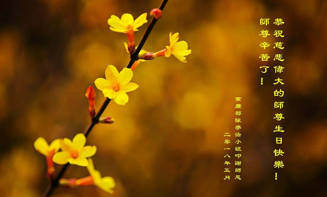 马上就到法轮大法日了,在此普天同庆的时刻,纽约上州大法弟子一家四口恭祝慈悲伟大的师父生日快乐。弟子一家谨记师父的教诲做好三件事,加倍弥补以前没做好的损失,走好以后的路请师父放心。