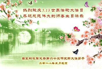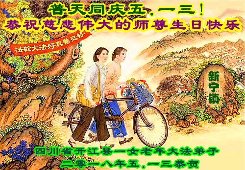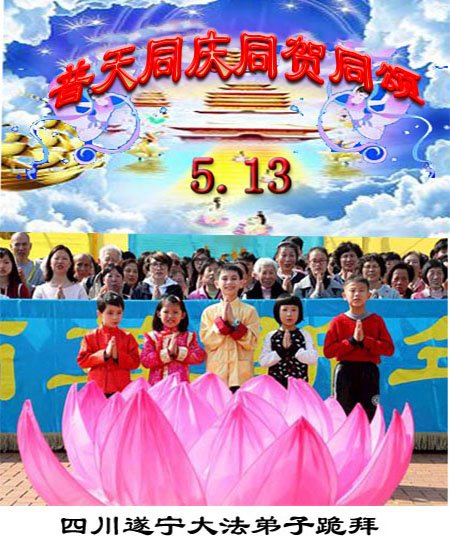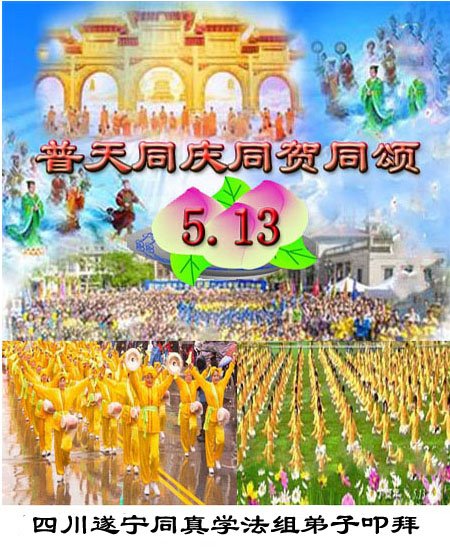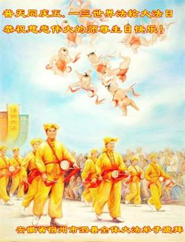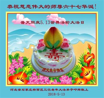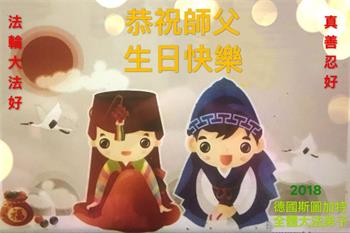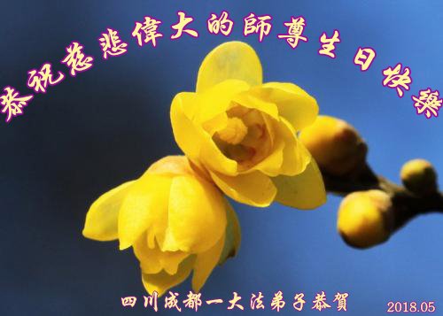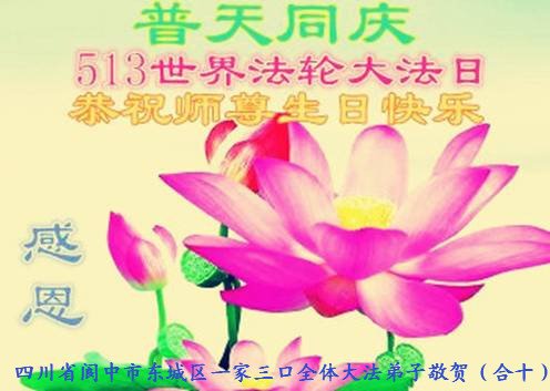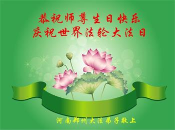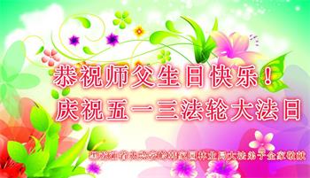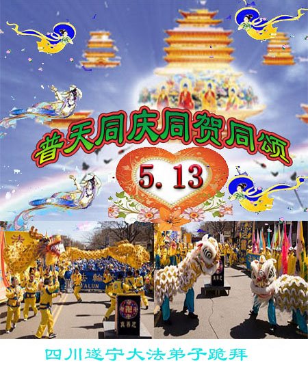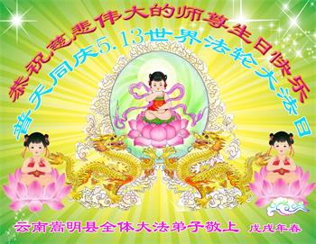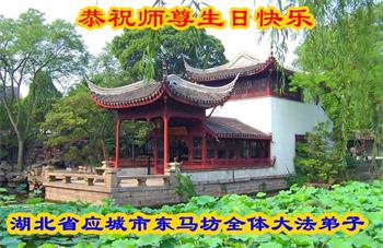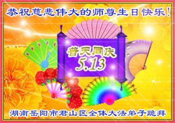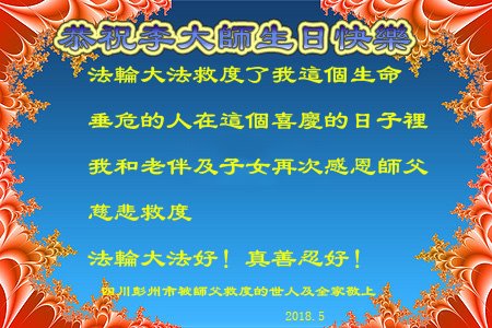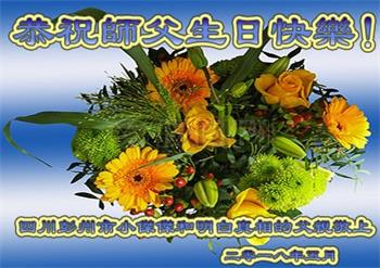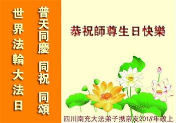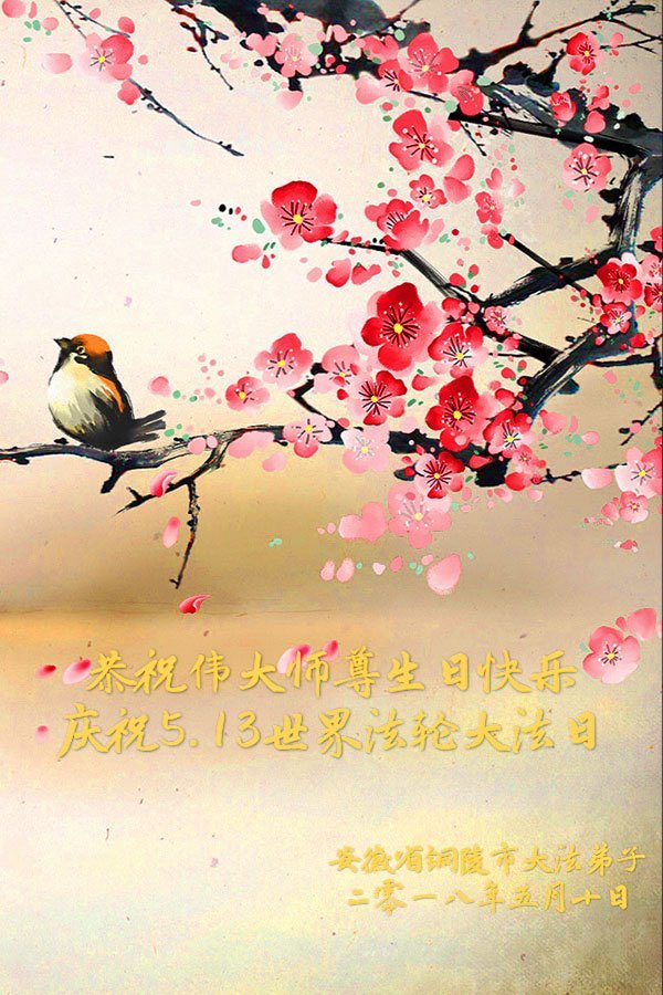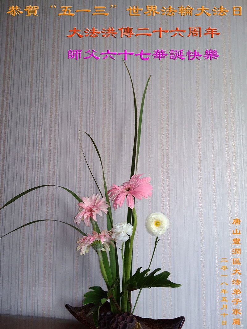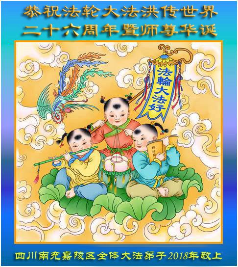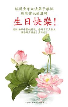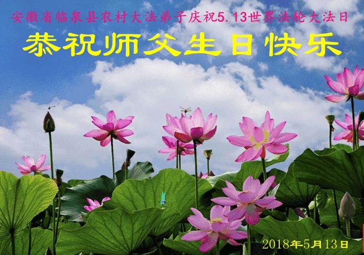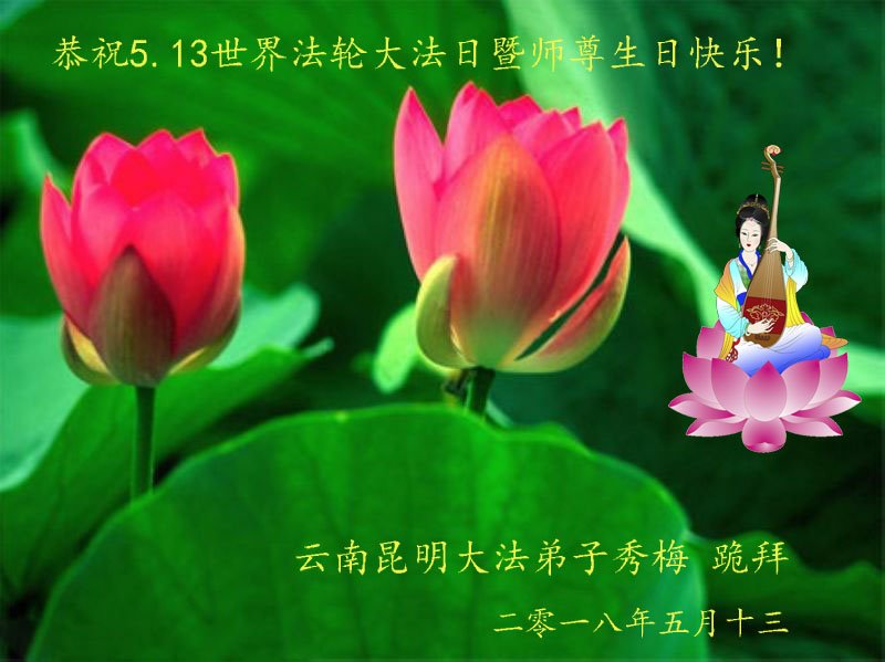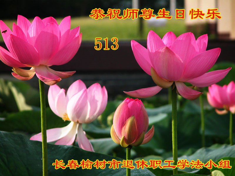 马上就到法轮大法日了,在此普天同庆的时刻,纽约上州大法弟子一家四口恭祝慈悲伟大的师父生日快乐。弟子一家谨记师父的教诲做好三件事,加倍弥补以前没做好的损失,走好以后的路请师父放心。
