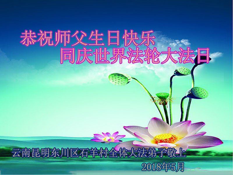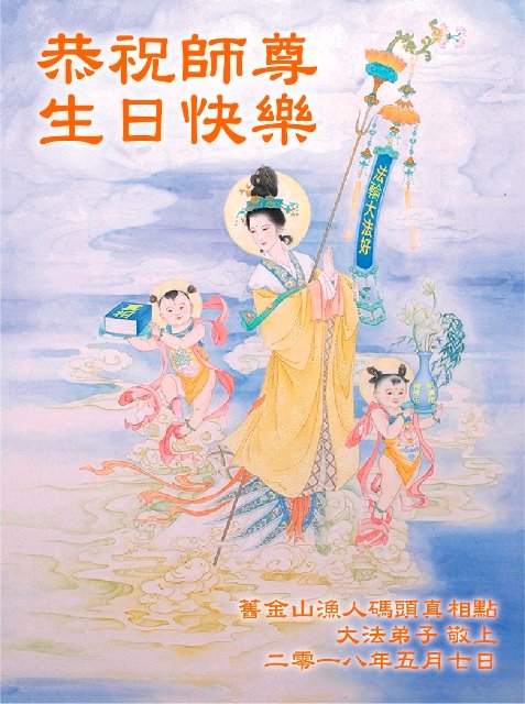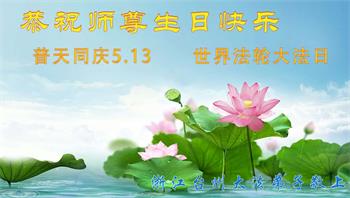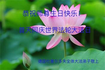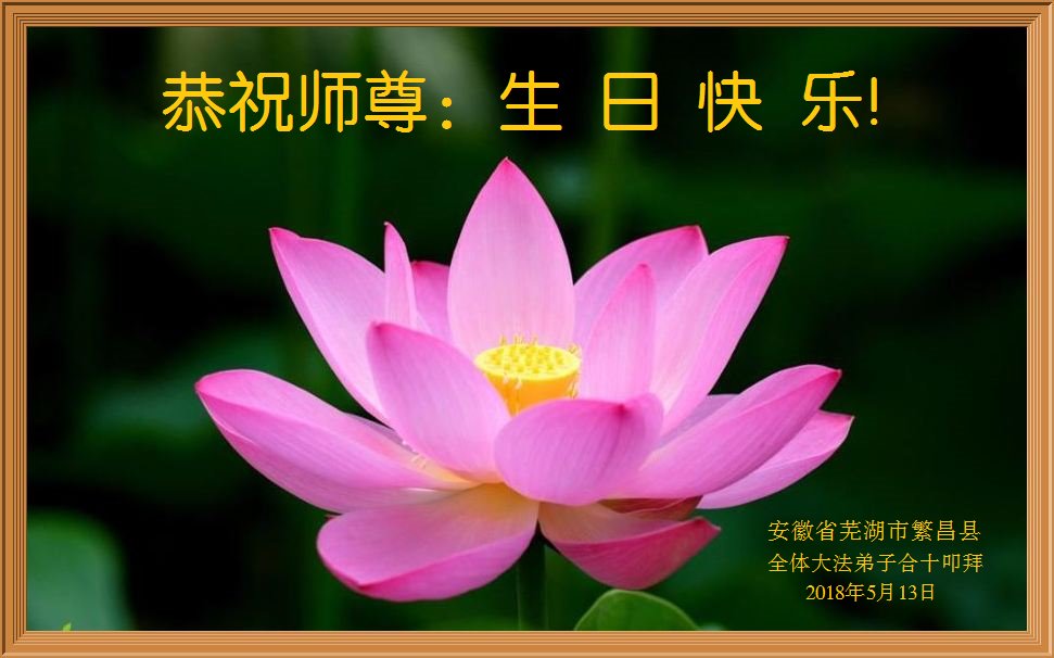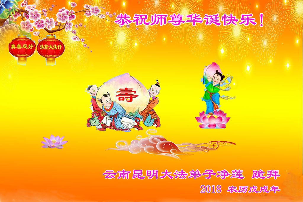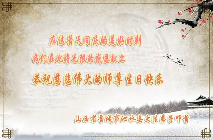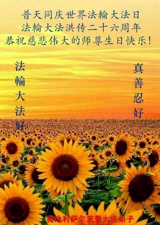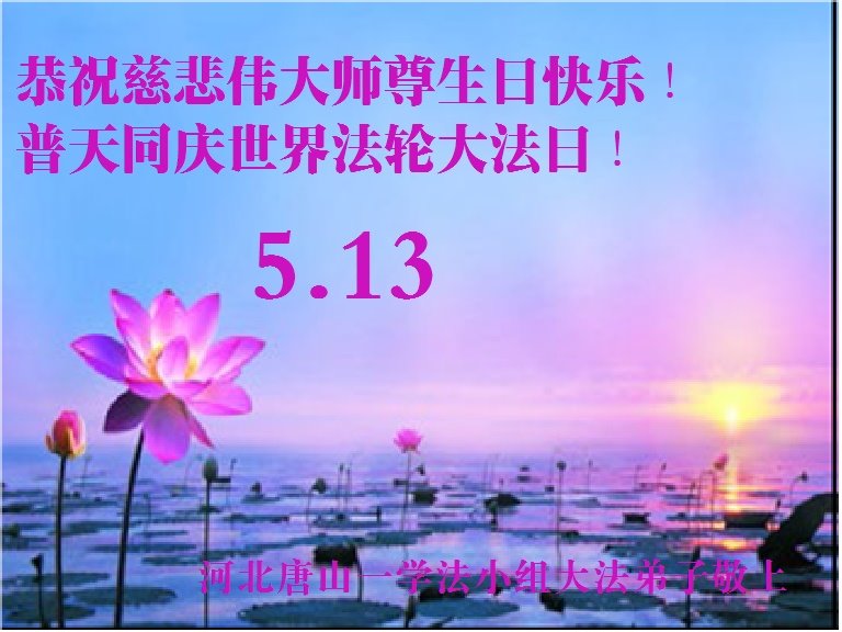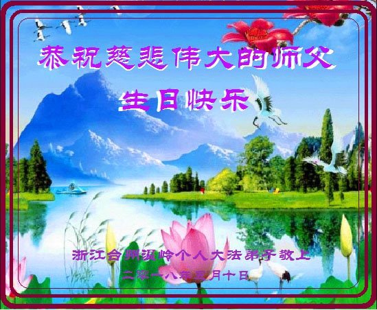 弟子恭祝师尊生日快乐!恭贺世界法轮大法日!修到如今弟子终于明白了师尊的良苦用心,无论是碰到的好事还是坏事都是在帮助弟子修去各种不好的人心,师尊的无量慈悲弟子感受到了,弟子体悟到了改变观念向内找的内涵,学会了修炼。不断纯净自己,认真做好自己所承担的大法救人的项目,抓紧时间多救人。在师尊华诞之际弟子再次叩谢师尊!弟子恭祝师尊生日快乐!旧金山一大法弟子