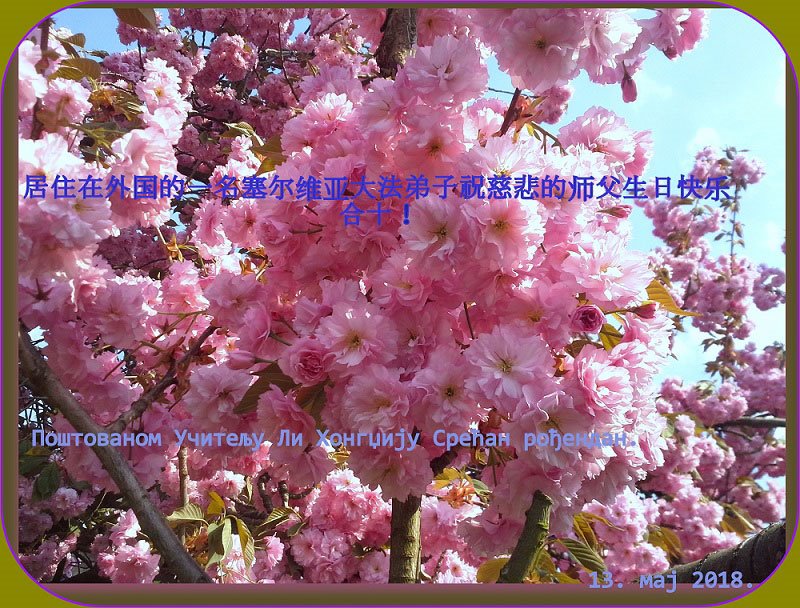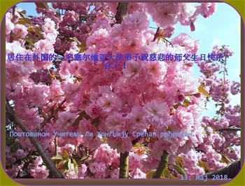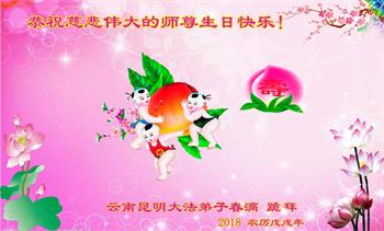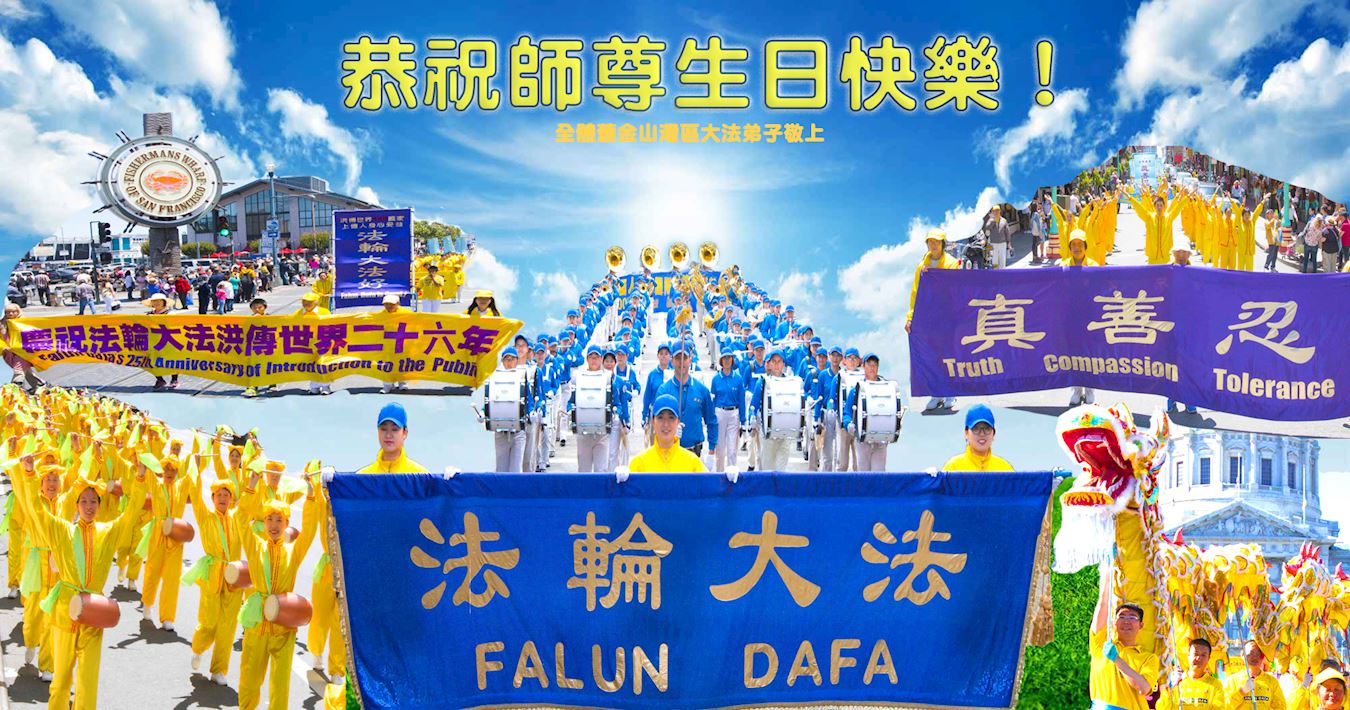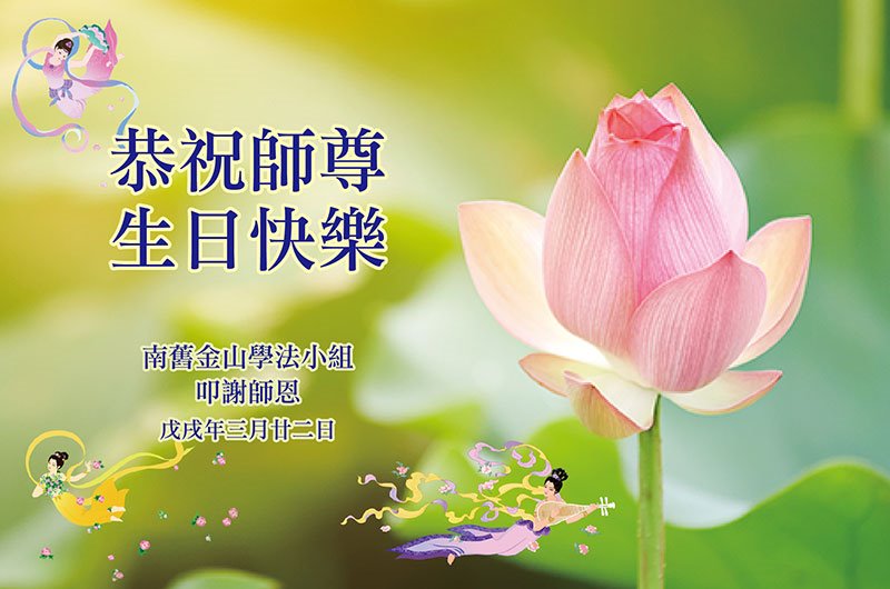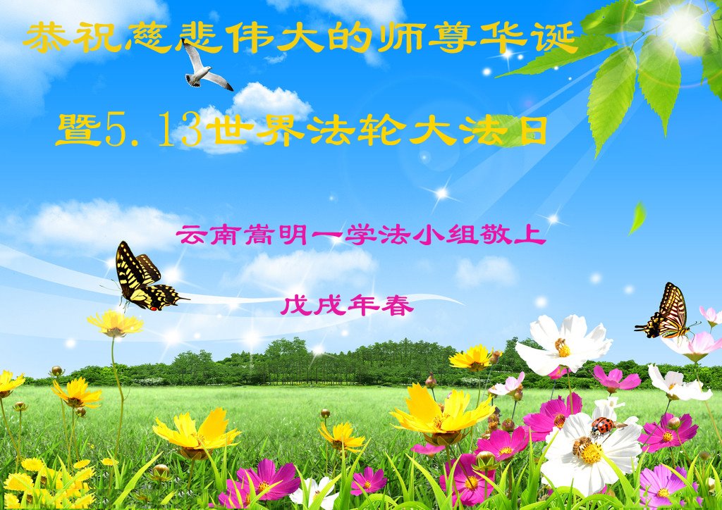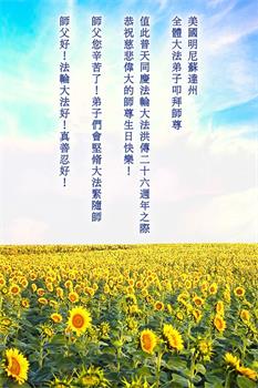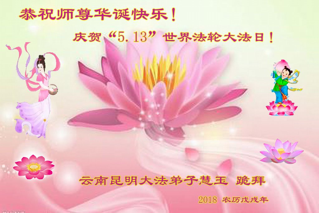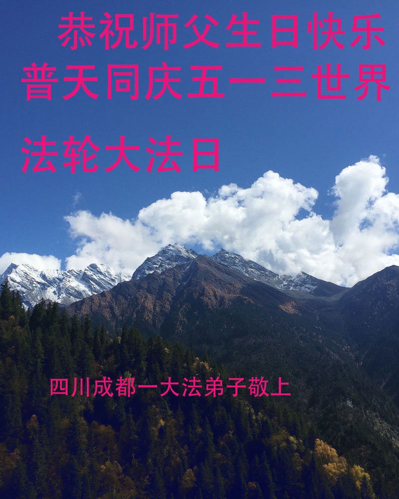 弟子恭祝师尊生日快乐!恭贺世界法轮大法日!修到如今弟子终于明白了师尊的良苦用心,无论是碰到的好事还是坏事都是在帮助弟子修去各种不好的人心,师尊的无量慈悲弟子感受到了,弟子体悟到了改变观念向内找的内涵,学会了修炼。不断纯净自己,认真做好自己所承担的大法救人的项目,抓紧时间多救人。在师尊华诞之际弟子再次叩谢师尊!弟子恭祝师尊生日快乐!旧金山一大法弟子