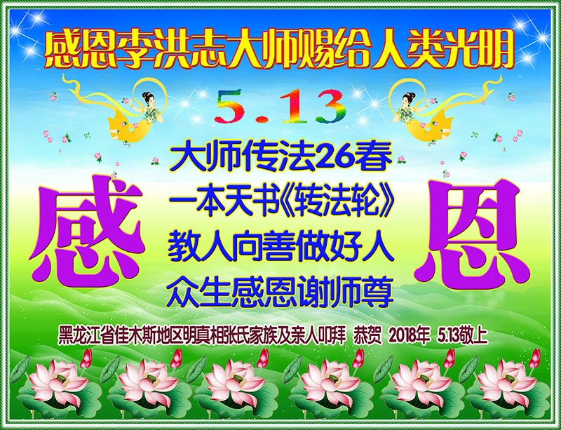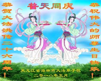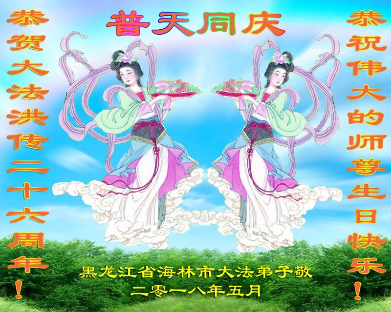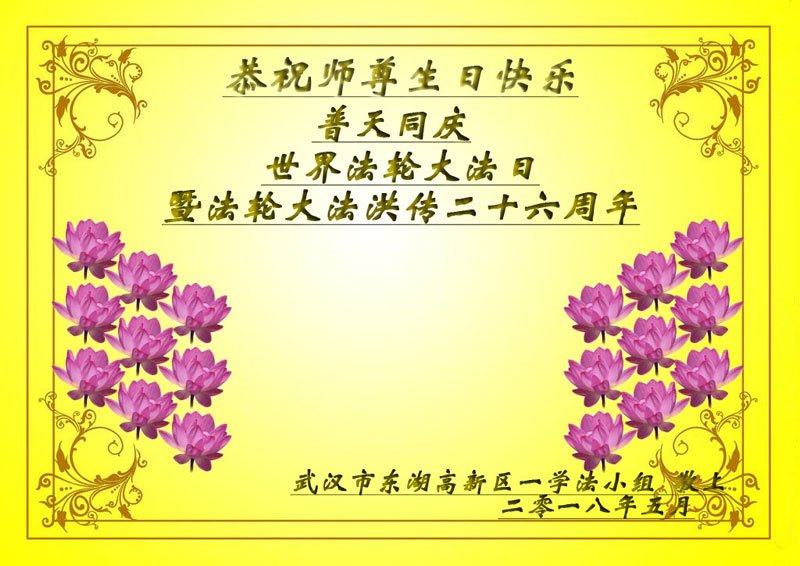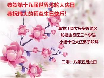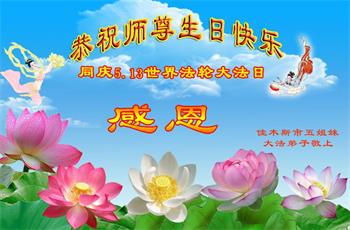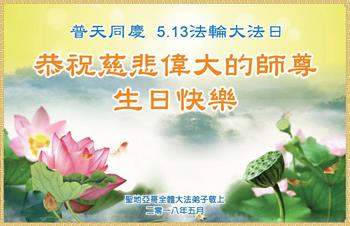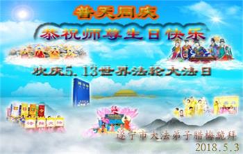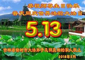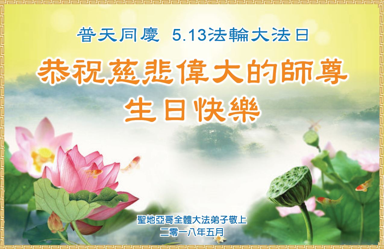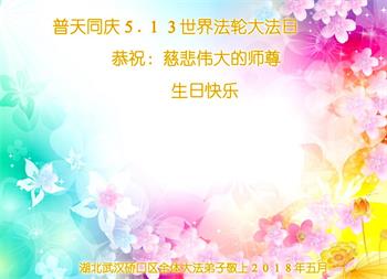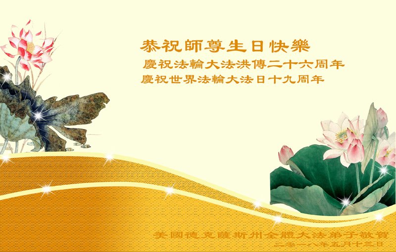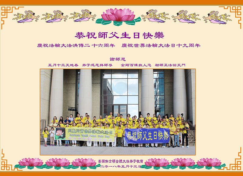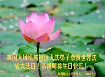 <英文版: http://en.d2s3ombhnov3zf.cloudfront.net/html/articles/2018/5/13/170069.html>美国23地区大法弟子恭贺世界法轮大法日暨师尊华诞