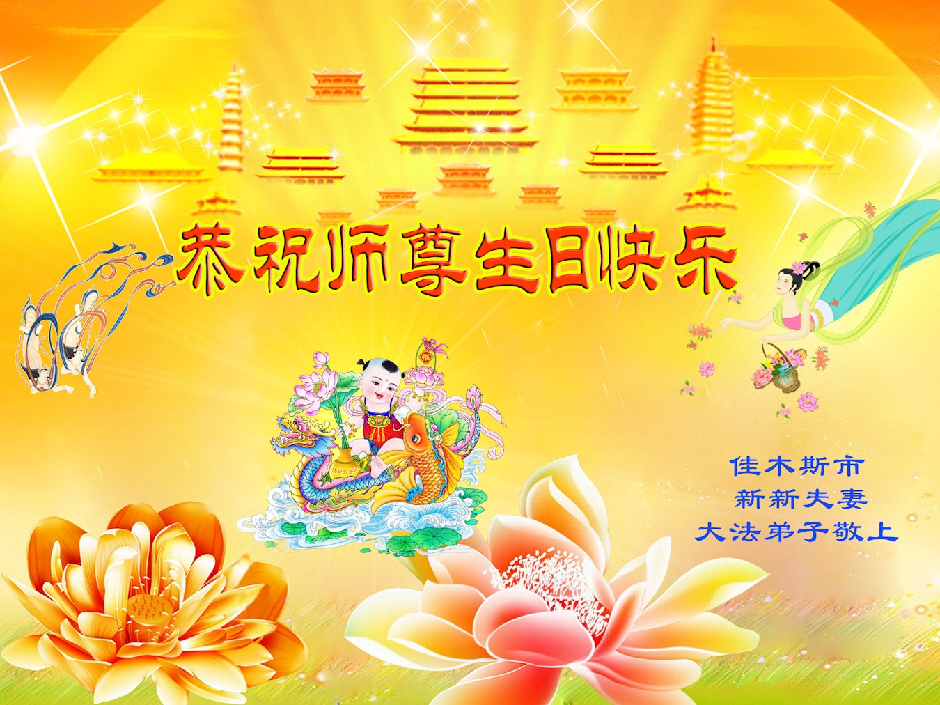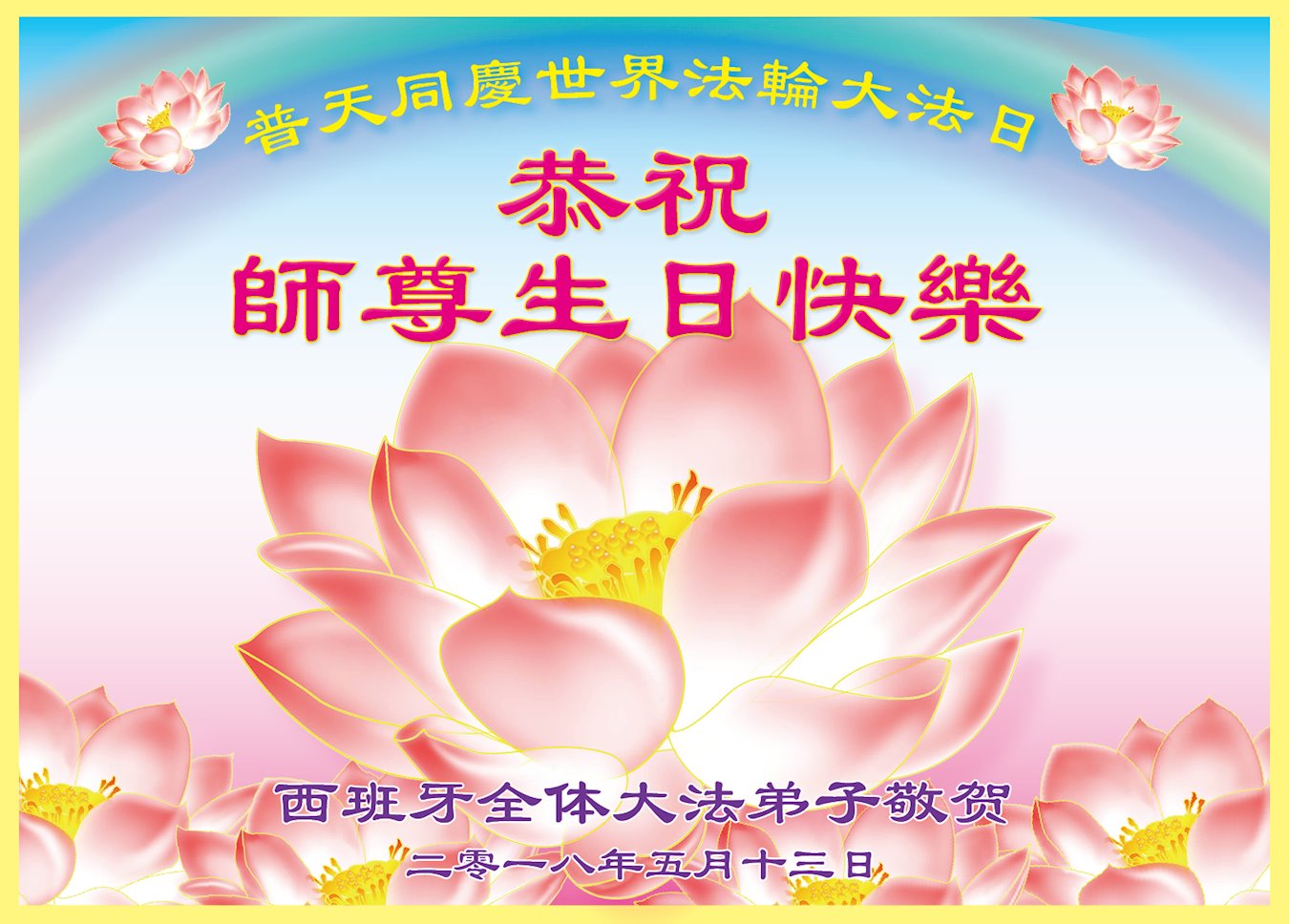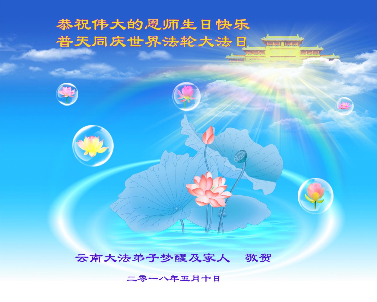 恭祝慈悲伟大的师父生日快乐暨普天同庆世界法轮大法日!