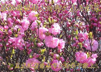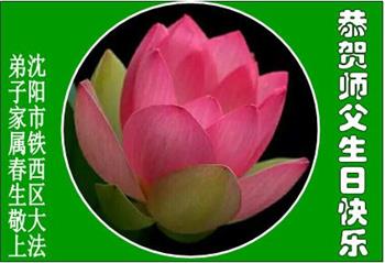 谨代表沈阳市同修向慈悲伟大的师尊问好!我们知道唯有多救人,修好自己,同化大法师尊才高兴。我们祝师父永远高兴,永远快乐!