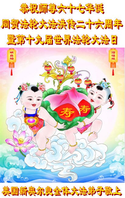 美国新奥尔良地区全体大法弟子恭祝师尊六十七华诞!同贺法轮大法洪传二十六周年。弟子必将勇猛精進,不负师尊重望。