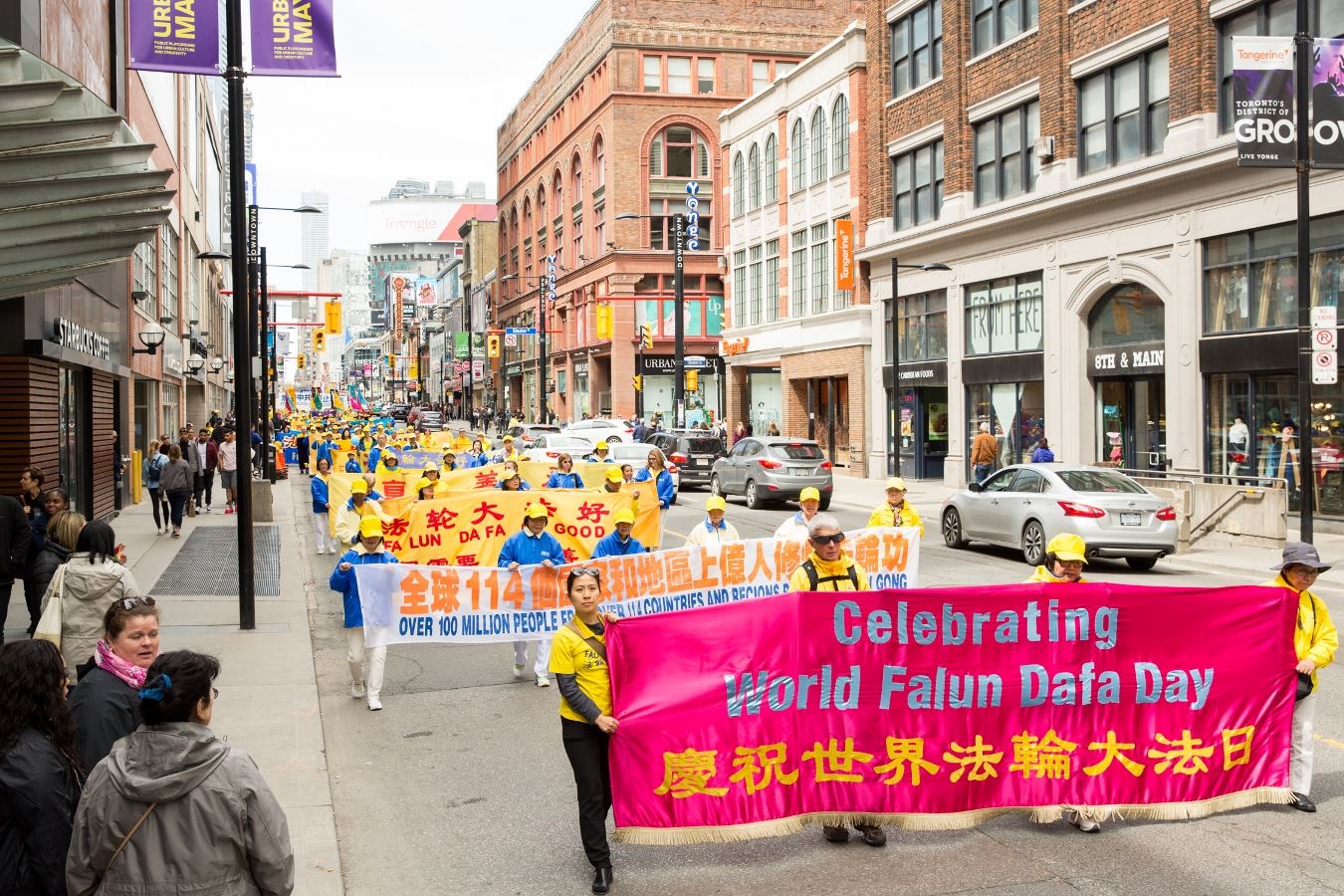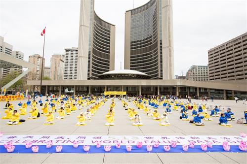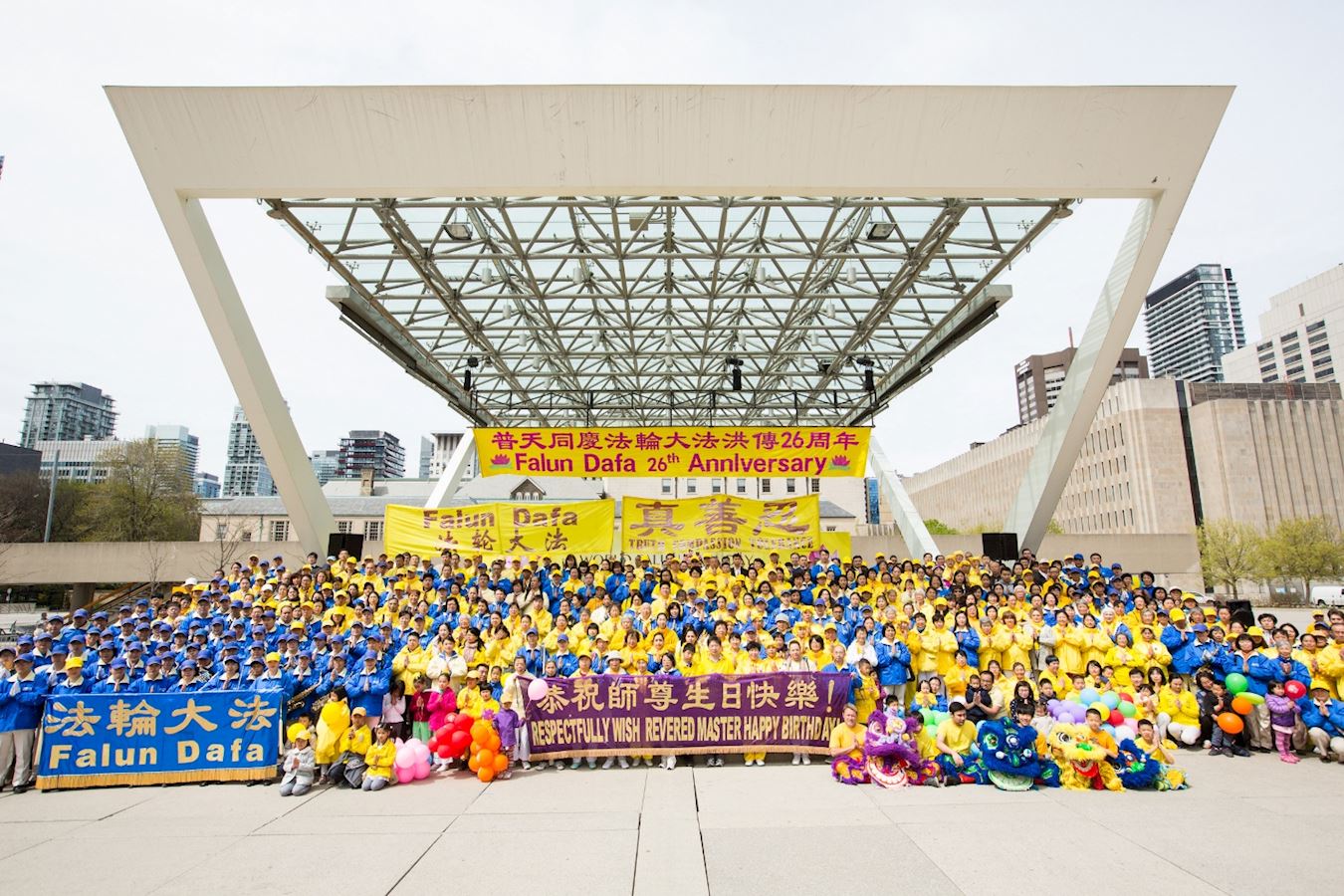 ![]() 图1:二零一八年五月十二日,加拿大东部近千名法轮功学员聚集在多伦多市政厅广场庆祝世界法轮大法日,恭祝师尊生日快乐。 |