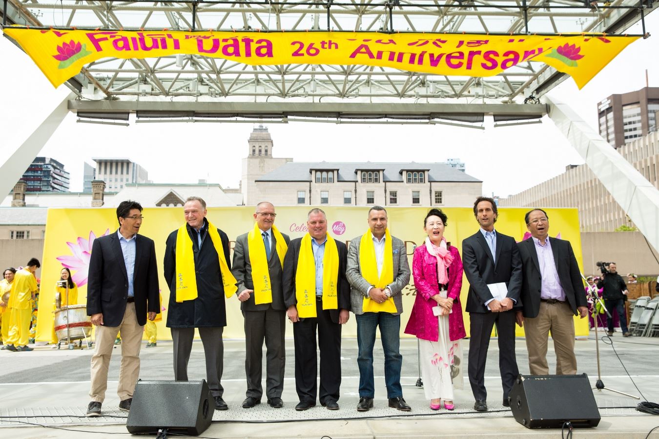![]() 图6:加拿大政要们和法轮功学员一起高呼:“法轮大法好!” |