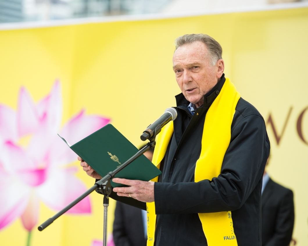 前加拿大国会议员李善(Wladyslaw Lizon)说:“很荣幸在这里和你们一起庆祝世界法轮大法日。我在共产专制下的波兰出生及长大。我参加了反抗共产党的运动,最终取得成功。感谢你们今天来这里,这会给在中国受到迫害的法轮功学员力量。”