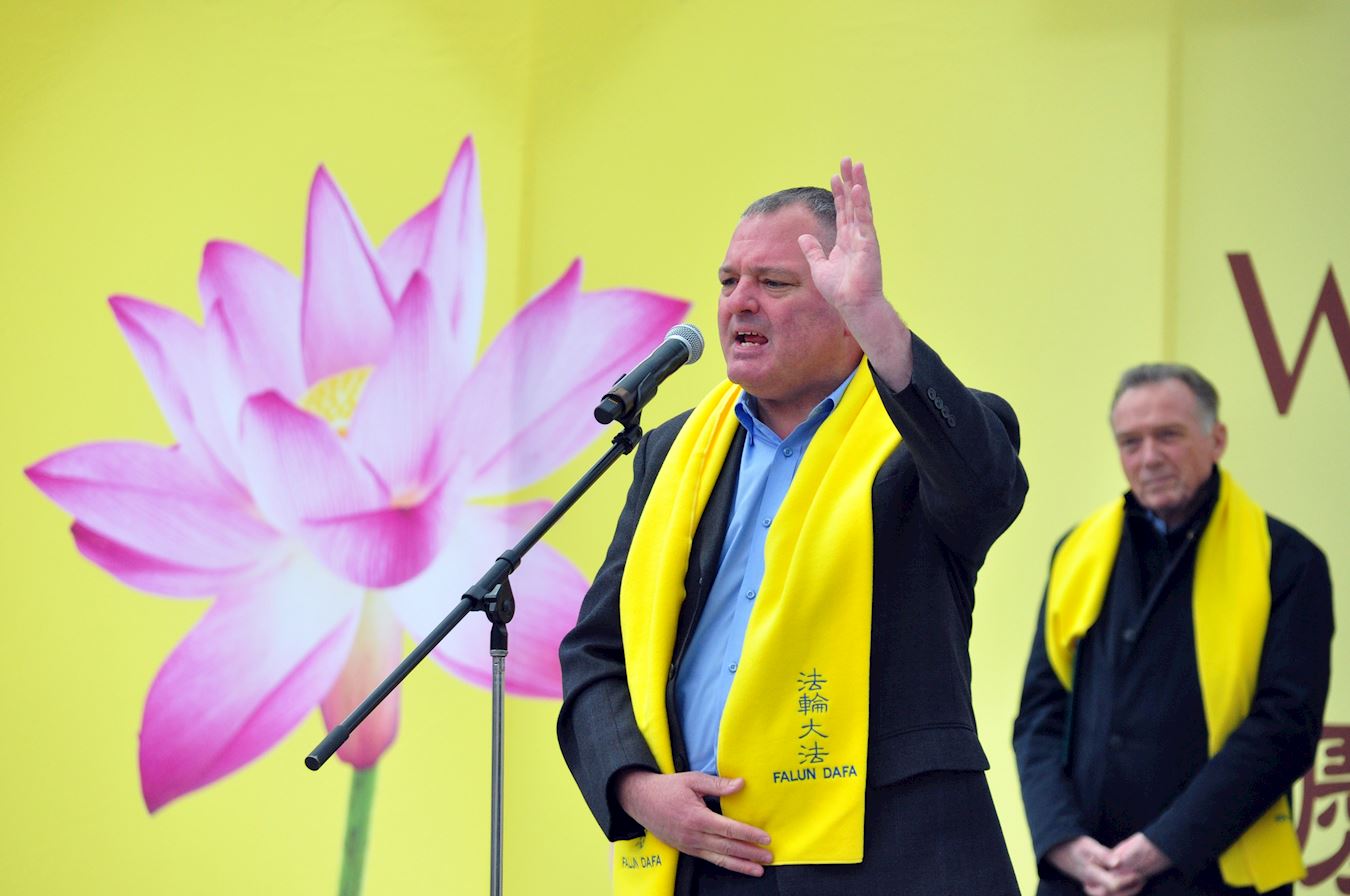 “信仰自由、结社自由是基本的人权。这是加拿大人理解并向世界传播的价值。”他说,人们只因为想要继续他们的信仰而遭受迫害,导致身体受伤,甚至死亡,“这是我们在这世上看到的最大悲剧之一”。他说:“像我这样的加拿大人,和你们站在一起,我想让你们知道,我们将继续为你们发声。”