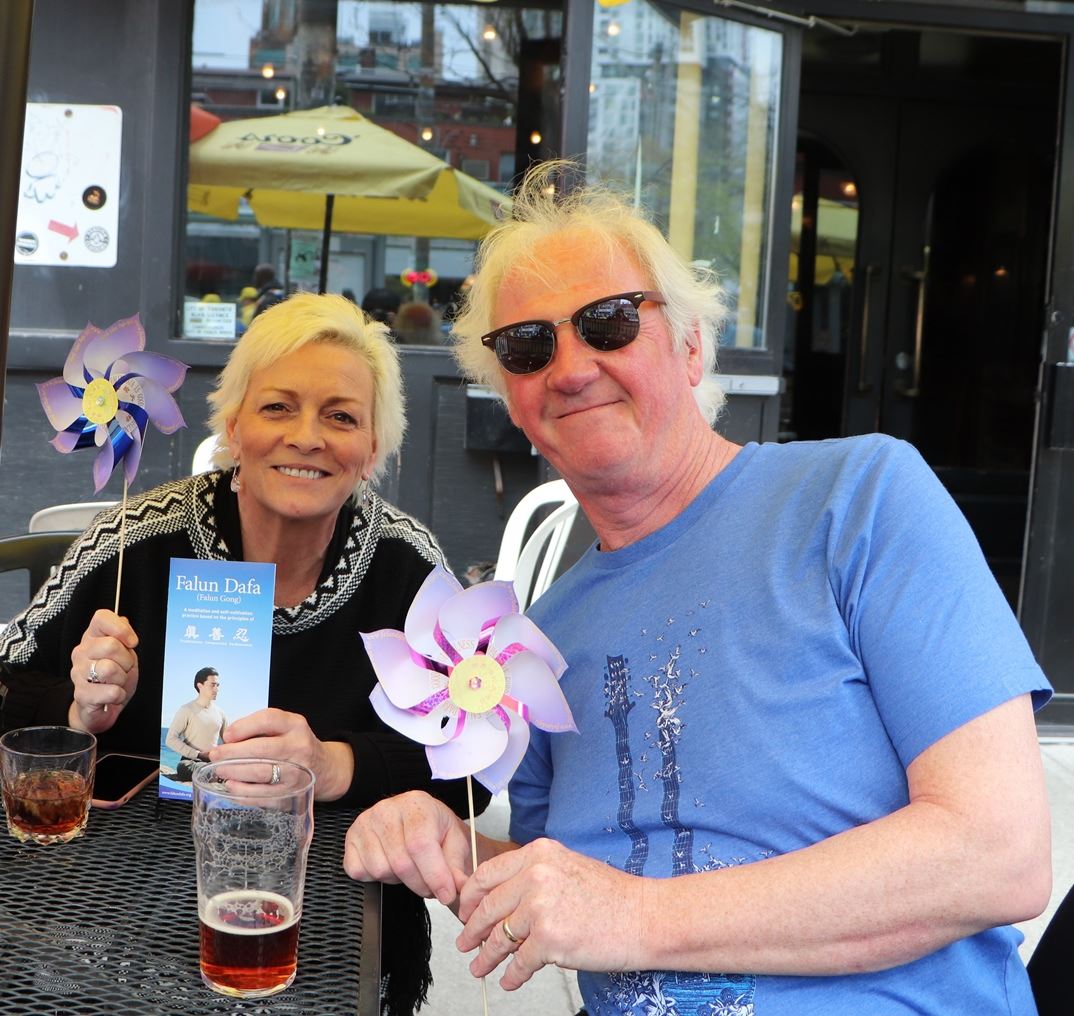 Kelso先生和太太Rain 在一家餐馆外观看着游行,Kelso先生说:“我们都很了解法轮功,我们也非常支持他们,因为我们知道他们是一群非常好的人,不分年龄和民族都有法轮功学员,他们能给这个世界带来平和,我非常认同他们真善忍的理念,这个世界需要这种和平。中共对他们的迫害是不可容忍的。我们都非常支持他们反迫害。”