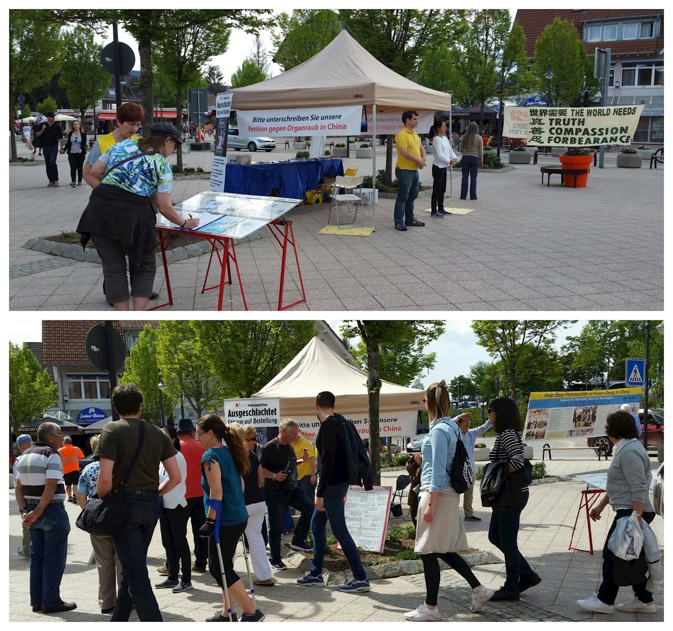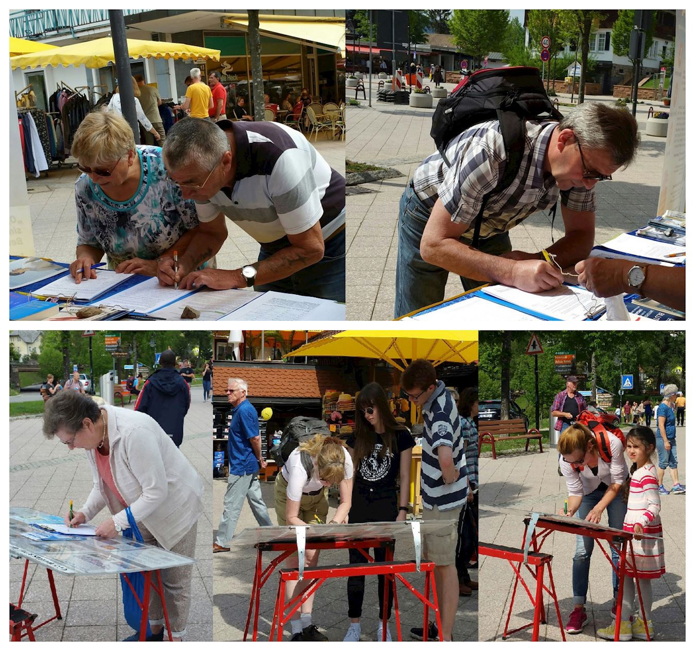 ![]() 图2~3:各国游客在制止迫害的征签簿上签名 |