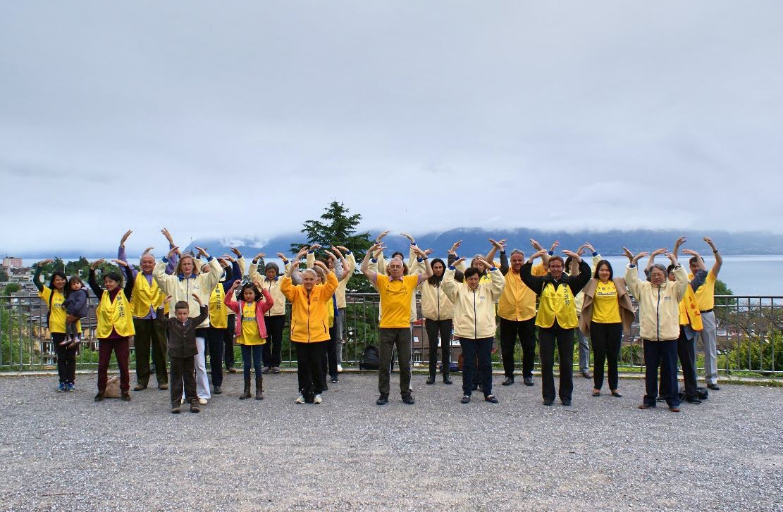 ![]() 图2~3:瑞士学员集体炼功、集体学法,庆祝世界法轮大法日。 |