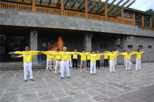 ![]() 图5~6:法轮功学员到热门景点受镇宫广场集体炼功 |