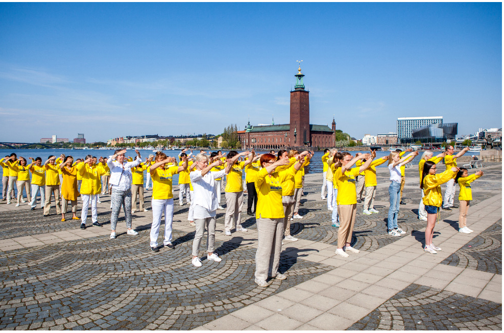 二零一八年五月十二日周六这天,天气格外晴朗、阳光明媚,瑞典法轮功学员聚集在首都斯德哥尔摩举办庆祝“世界法轮大法日”系列活动,中西方学员与瑞典各族裔民众一起欢庆这个殊胜的节日,同时恭祝慈悲伟大的师父生日快乐。