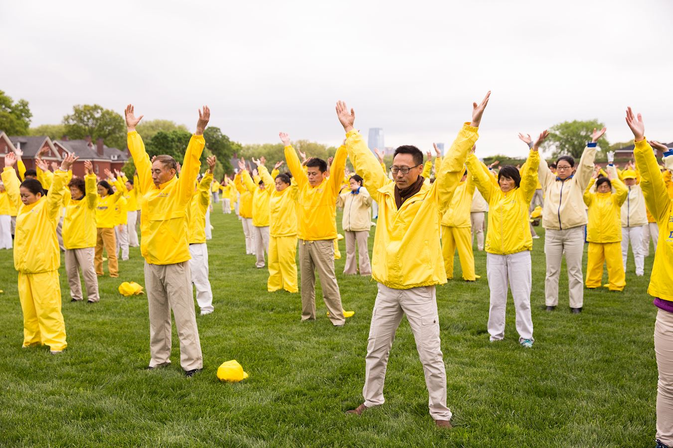 纽约法轮大法佛学会负责人易蓉女士讲述了排字的缘由,她说:“受大陆大法弟子的鼓舞,看到大陆大法弟子在很大的炼功场面时有排字,那个气势很洪大。我们纽约大法弟子人很多,在海外来说具备这个条件,所以我们每年都排字。”