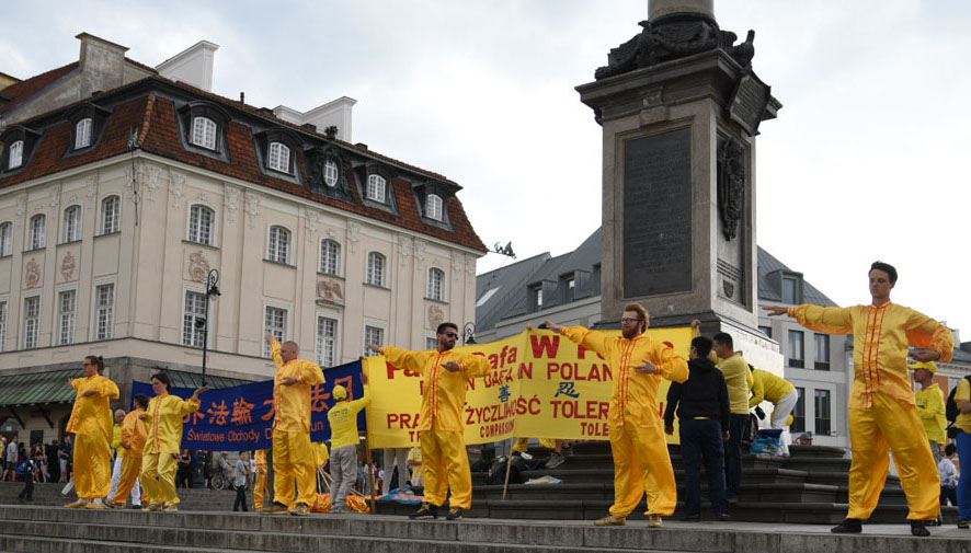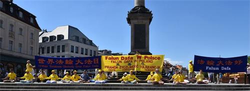 ![]() 图2~4:波兰学员在华沙古城广场集体展示法轮功五套功法 |