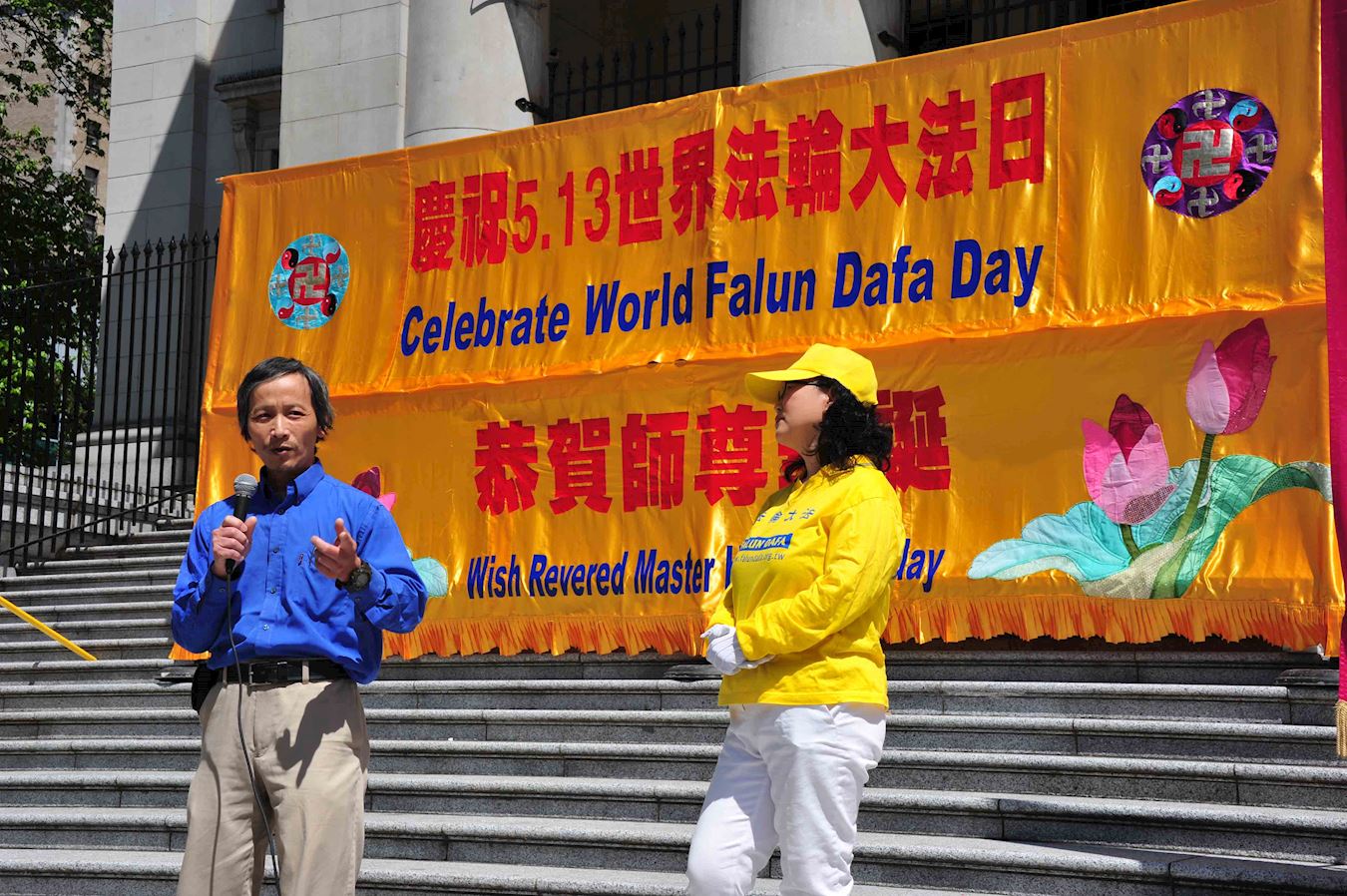 “只有做正义的事情,做真善忍的事情,我们才能得到神的祝福。最后我们向李洪志先生华诞表示祝贺,向全体拥护和支持法轮功的民众表示感谢。”