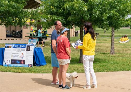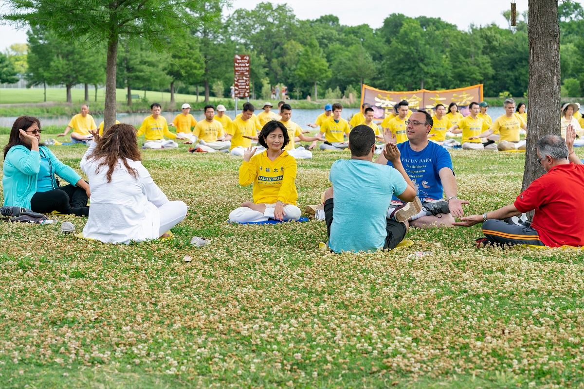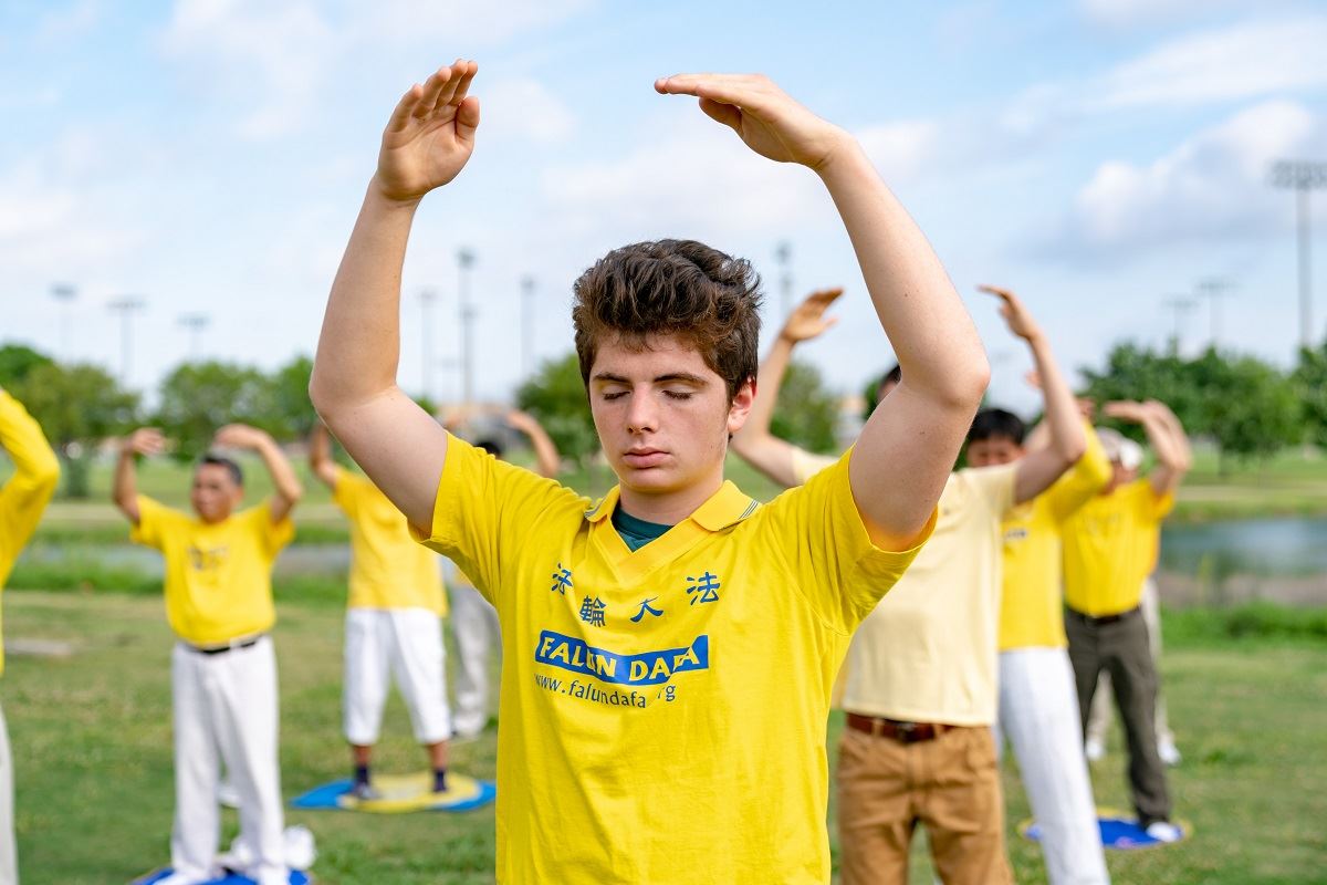 Ian是北德州大学(North Texas University)政府和金融系的大学生,因所学专业的关系,他关注中共对法轮功的。在两周前一次社区活动中与法轮功学员相遇,得知了庆祝世界法轮大法日的活动,他欣然前来想亲身体验一下功法。活动结束时,他表示虽然学校离布兰诺不是很近,但他会尽量参加周末的集体炼功。
