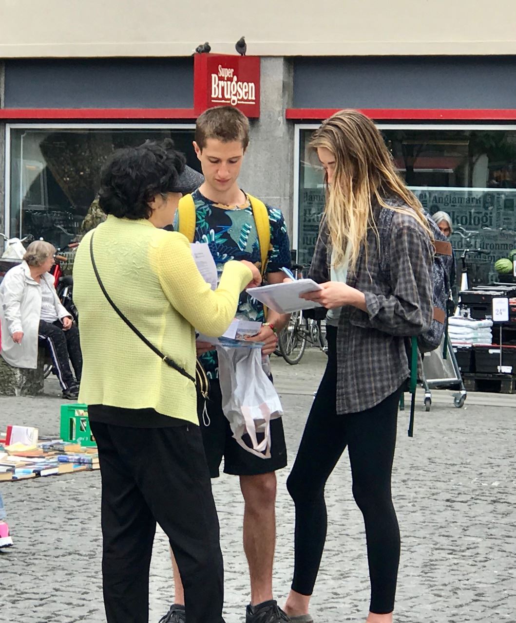 '图4:来自美国科罗拉多州的一对男女青年听到法轮功真相,并签名支持反迫害。'