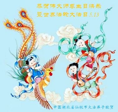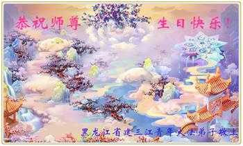 吉林省长春一位一九九四年开始修炼的大法弟子说:“在师尊67岁华诞来临之际,我忽然感到在人世间能有机会给无上伟大的师尊祝寿,这是何等荣幸的事!我是94年得法的弟子,随师正法走到今天,心中有多少话要向师尊诉说,用尽人类的语言也表达不了对师尊苦度的感激之情。我从一个对神佛一无所知、邪*党-文化灌输成长起来的人,而今成为一名助师正法的法徒,这其中有着多少神佛的辛劳苦度。我要不忘师恩,踏踏实实的修好自己,不辜负师尊的苦度,众生的期望,而完成使命,让师尊放心。”