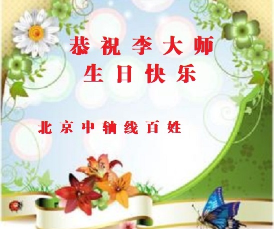 北京中轴线百姓发来了贺卡和贺信:“恭祝李大师生日快乐!庆祝5.13世界法轮大法日!