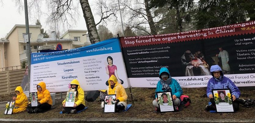 ![]() 图1~2:芬兰的学员集中在中国大使馆前,纪念那些因信仰真、善、忍而被迫害致死的法轮功学员们。 |