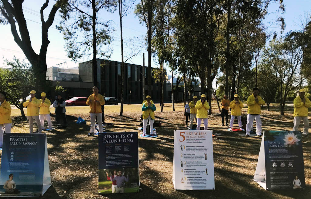 ![]() 图4:五月六日,悉尼法轮功学员在Burwood公园举行“世界法轮大法日”庆祝活动。 |