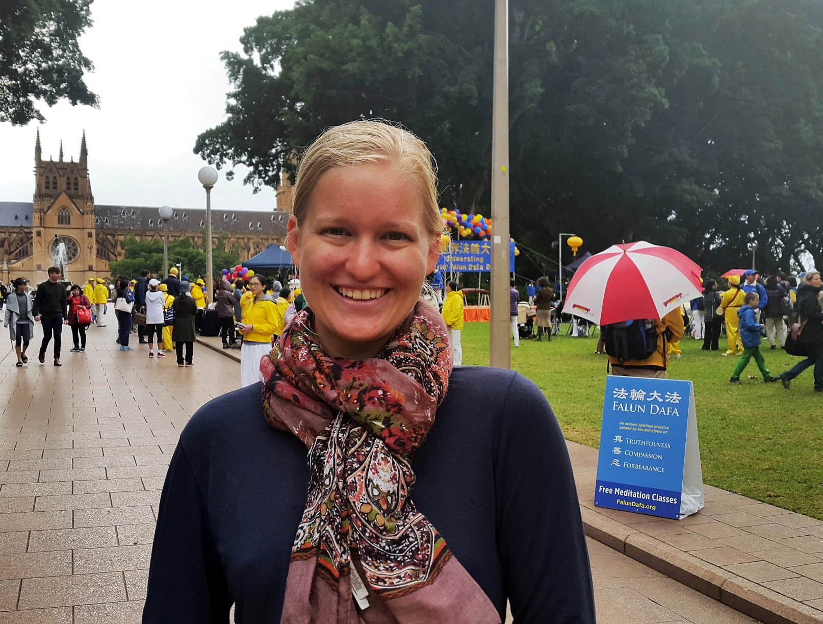 从远处听到小提琴演奏就赶来参与庆贺的凯特琳·蔡斯(Kaitlyn Chase)是从美国来澳洲旅游的青年网页设计师。她表示:“法轮功学员演奏的都是古典音乐;表演的都是传统舞蹈,我从来没有看到过这么美好的表演,我这次看到的是最好的!法轮功的音乐让我感到祥和、愉悦,‘世界法轮大法日’的庆祝活动确实太美好了!”凯特琳表示回去后要把看到的这些美好体验传播给朋友们。