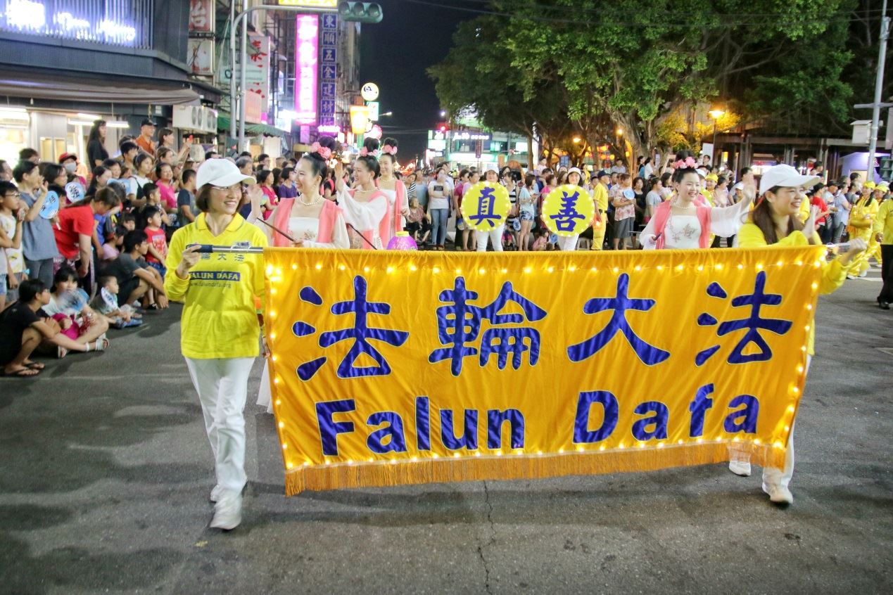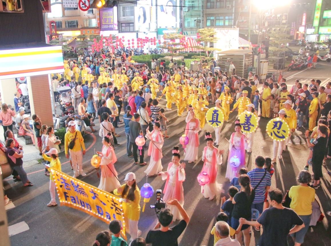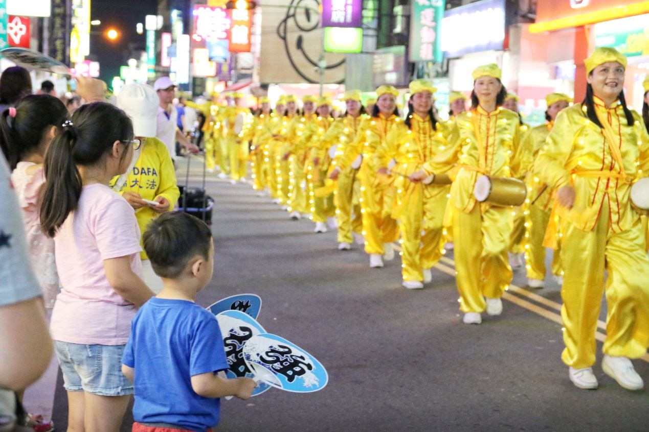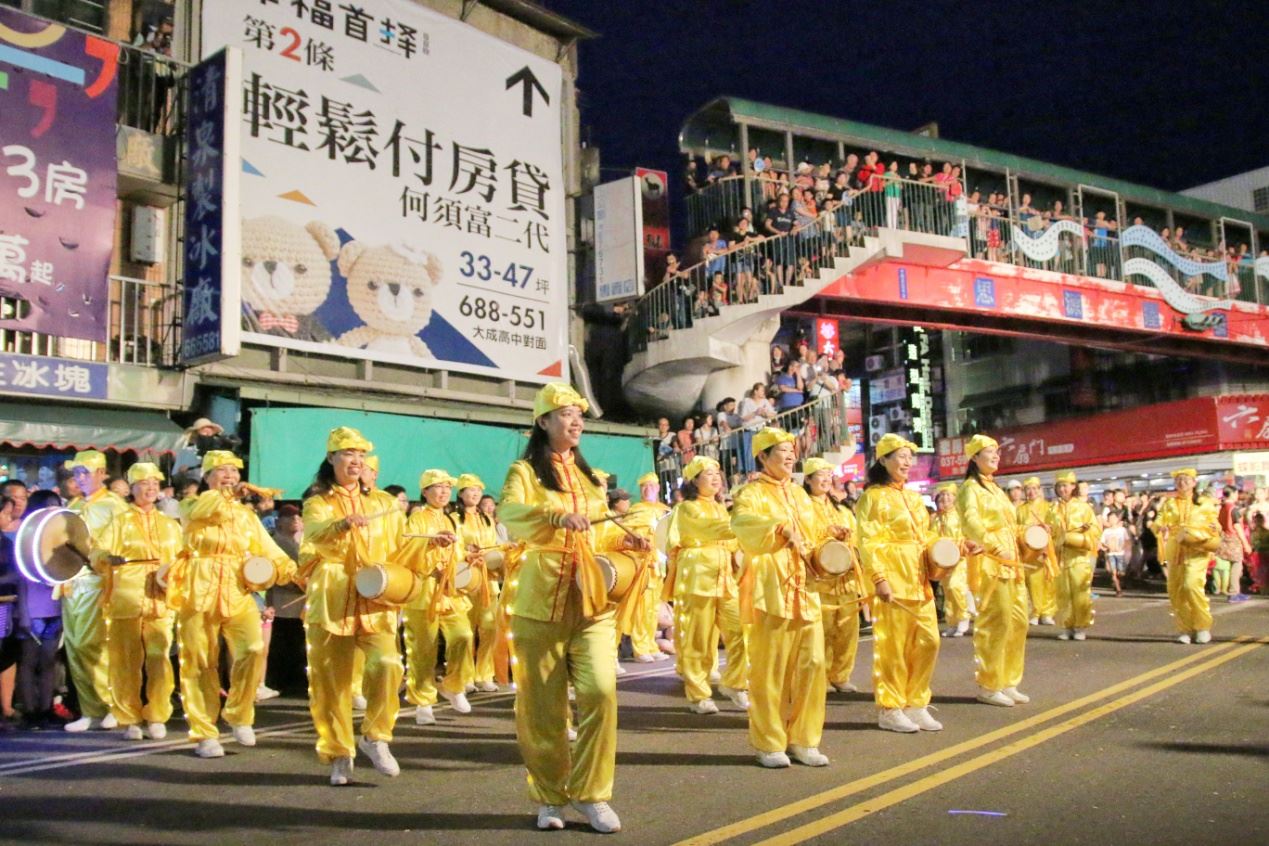 “头份四月八”曾入选台湾客庄十二大节庆,缘起于民国初年头份市上、下街仕绅元宵节花灯对抗赛,难分轩轾,黄历四月初八再次对决,又结合佛诞日浴佛节,演变成头份特有民俗节庆。法轮功学员组成的腰鼓队及旗鼓队,踩街游行时带着感谢师恩的心情,希望把法轮大法的美好传递给世人。