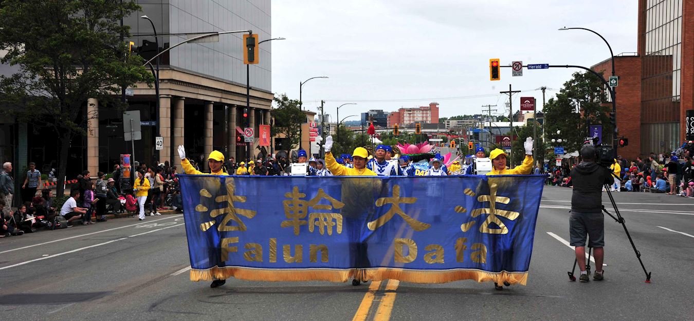 5月21日,加拿大温哥华法轮功学员参加了位于温哥华岛上的卑诗省首府维多利亚市(Victoria)举行的第120届维多利亚日游行(120th Island Farms Victoria Day Parade)。这是温哥华岛上规模最大的游行。因为当天是长周末,因此有很多外地游客也特意前来观看,在游行路线两边一早就坐满了等待观看游行的人们。